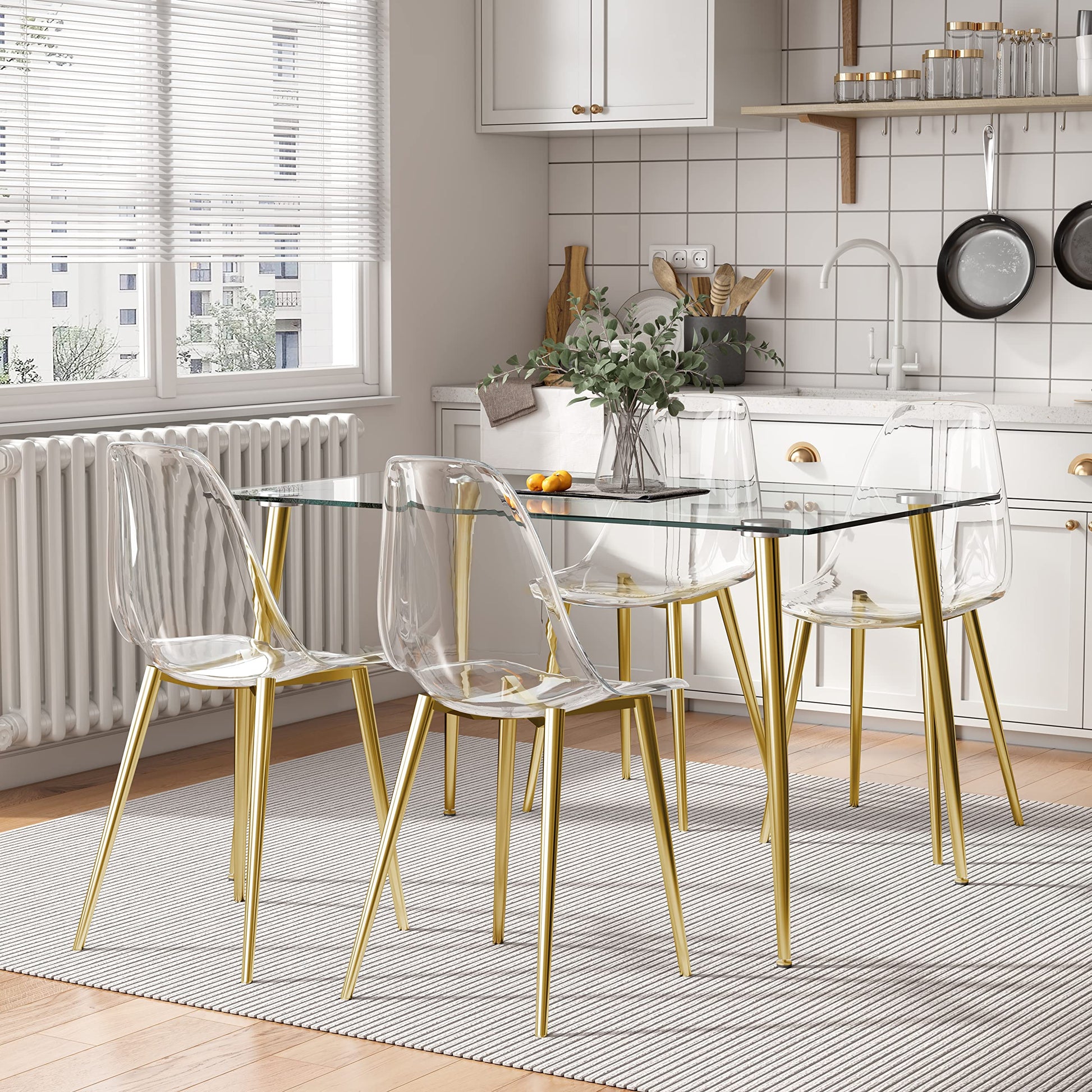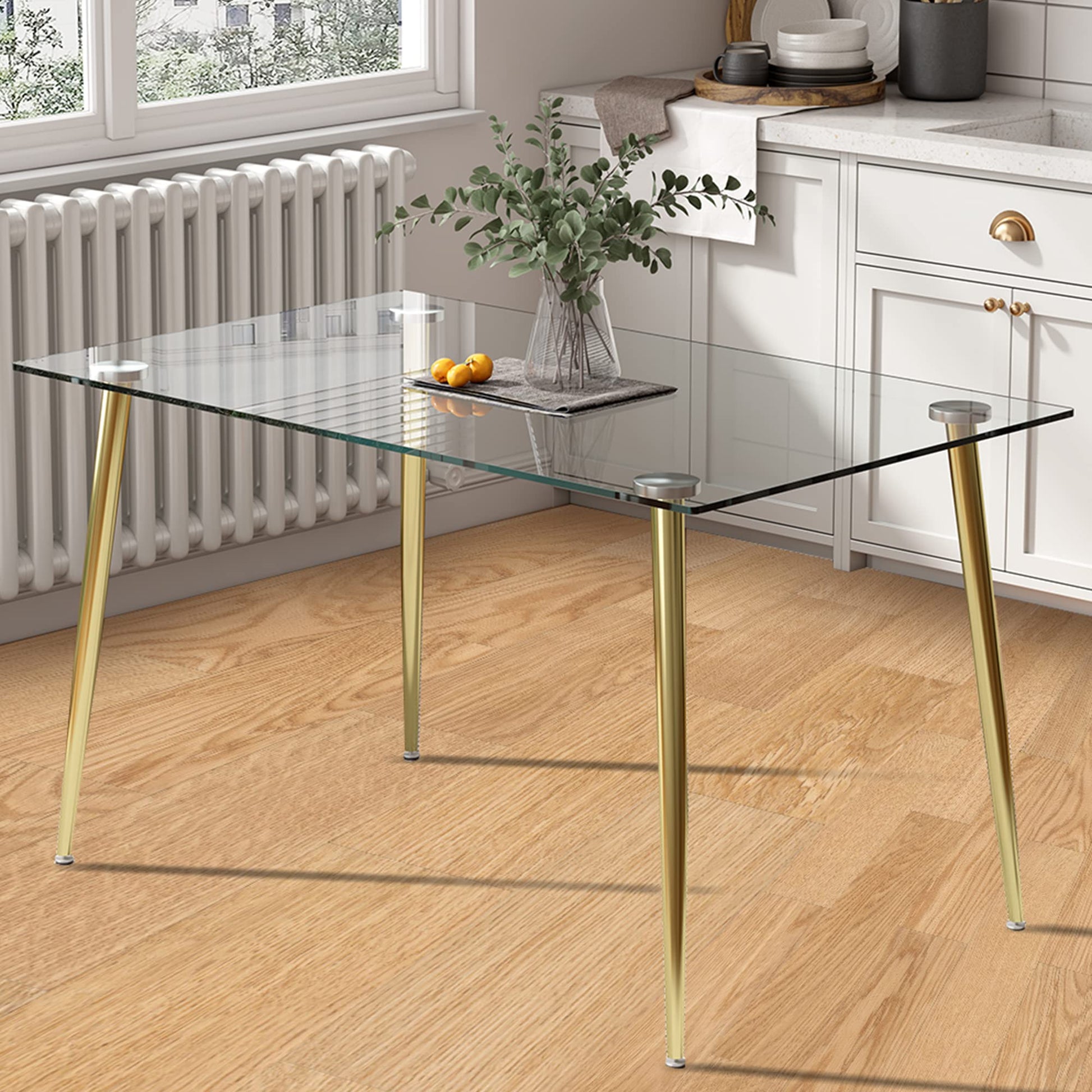 51 inch Glass Dining Table Set for 4, Dining Table & Chair Sets with Gold Plating Legs
