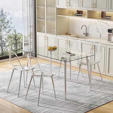 - The dining chair is made of high-quality transparent plastic, elegant and comfortable. The backrest is designed according to the curvature of ergonomics, which is comfortable and adds a touch of sophistication to the chair. The durable frame and legs make this chair stand out and look classy.