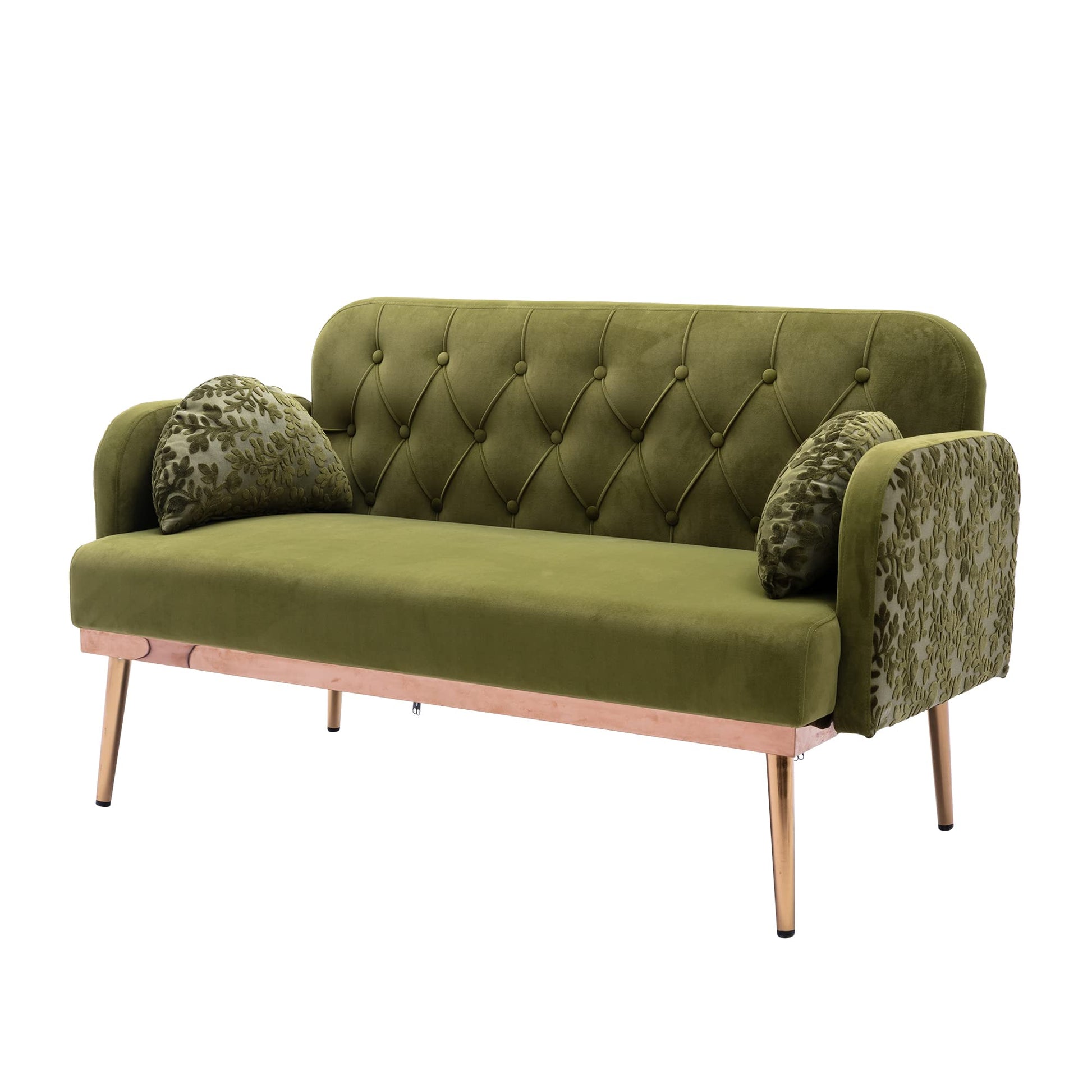 55" Small Velvet Couch with Elegant Moon Shape Pillows