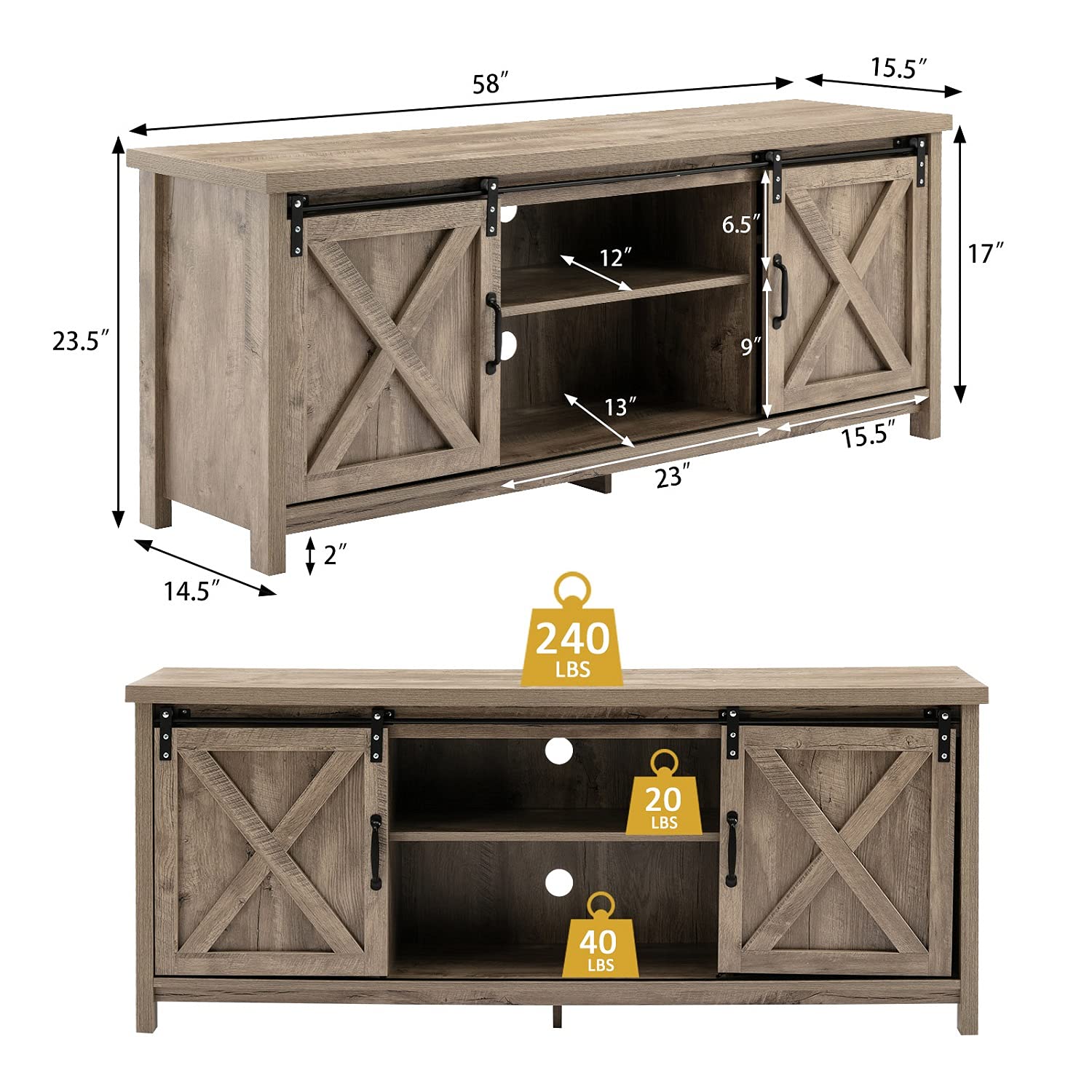 58" Farmhouse TV Stand for TVs up to 65 inch, Entertainment Center TV Cabinet