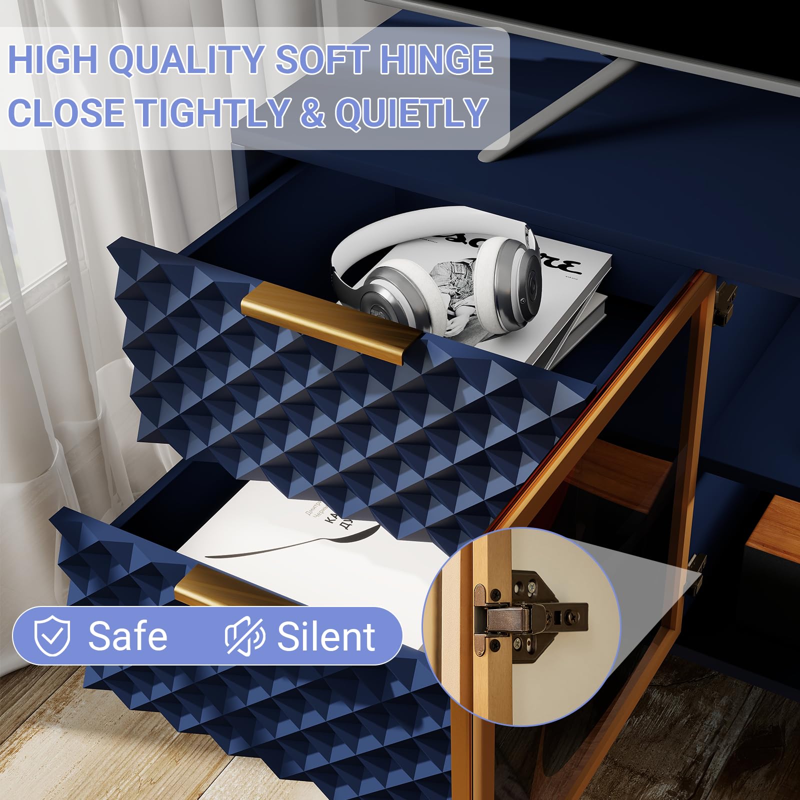 Transform your living space with this sophisticated 59-inch TV stand, expertly designed to accommodate 55, 60, and 65-inch televisions. Featuring a contemporary two-tone finish in striking blue, this media console combines functional storage with modern aesthetics to create a stunning focal point in any room.