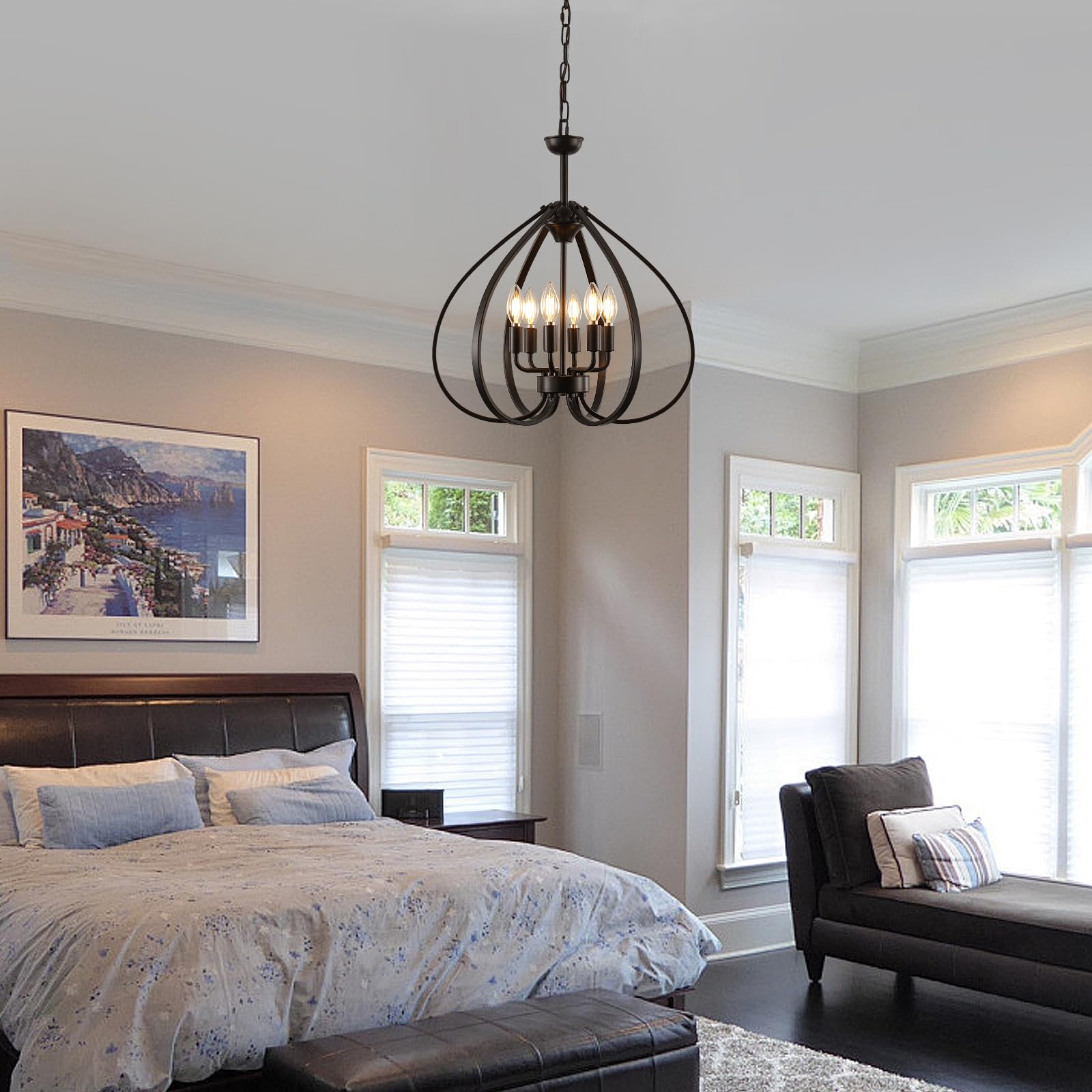 Transform your space with this stunning 6-light industrial chandelier that combines rustic farmhouse charm with modern functionality. The distinctive metal cage design creates captivating light patterns while serving as a striking focal point in any room.