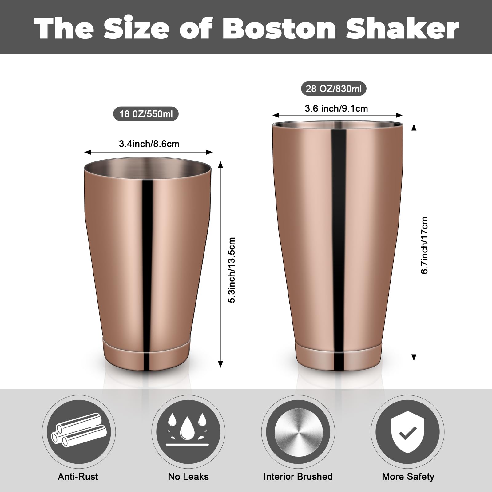 - the stainless steel shaker has been tested to be more waterproof than glasses shakers, less likely to leak, this Boston shaker set is not easy to freeze, drip or spill as you pour your drink