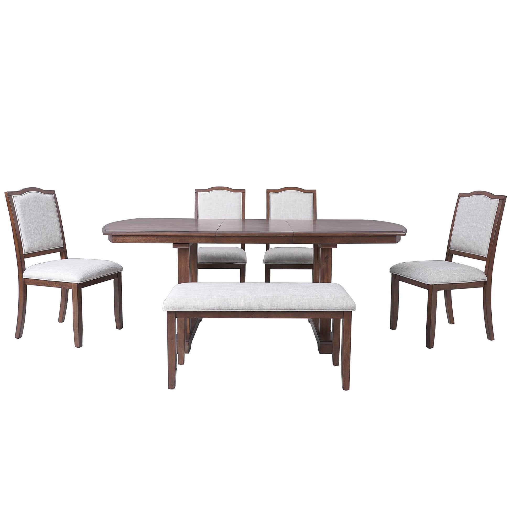 6-Piece Extendable Wood Dining Table Set with Upholstered Chairs