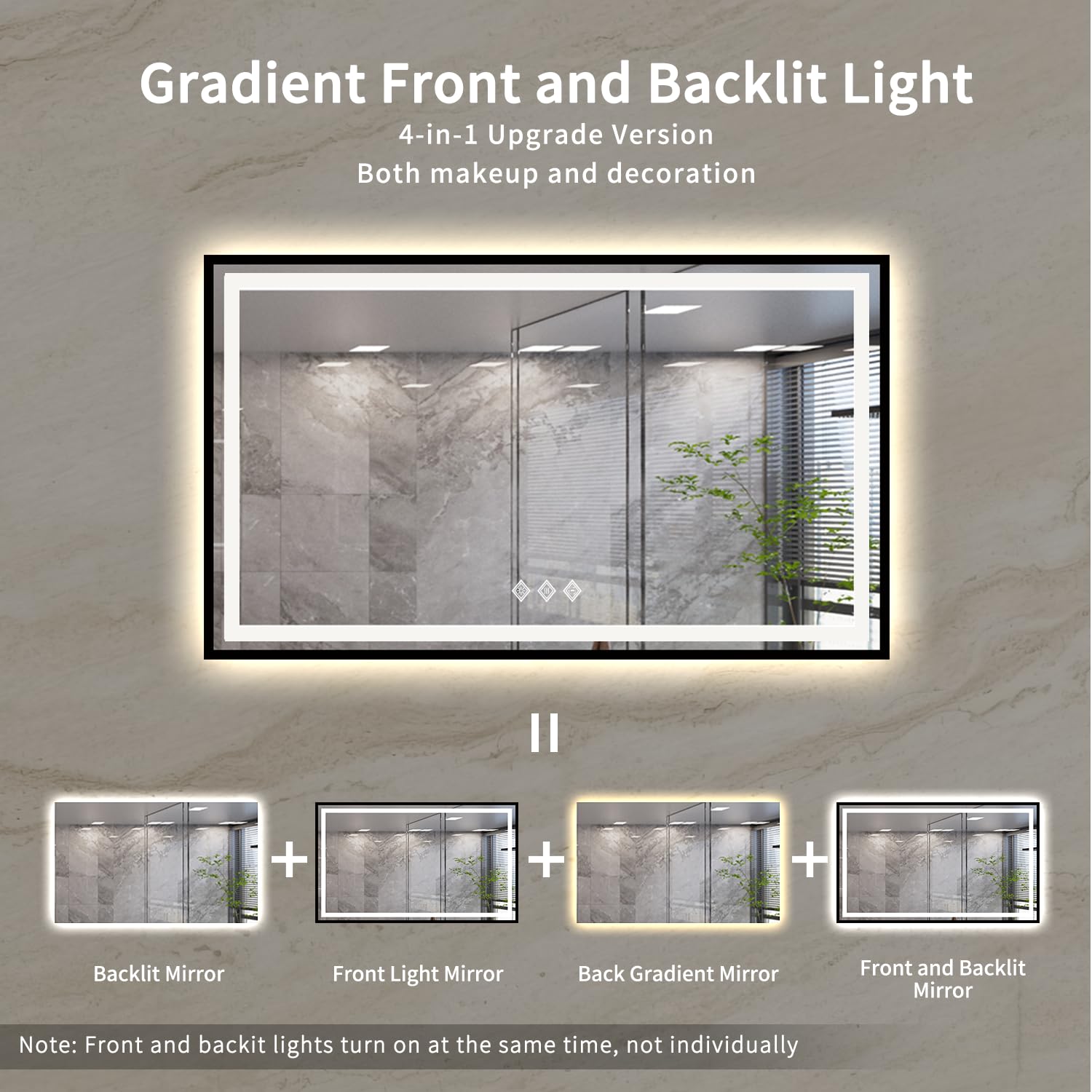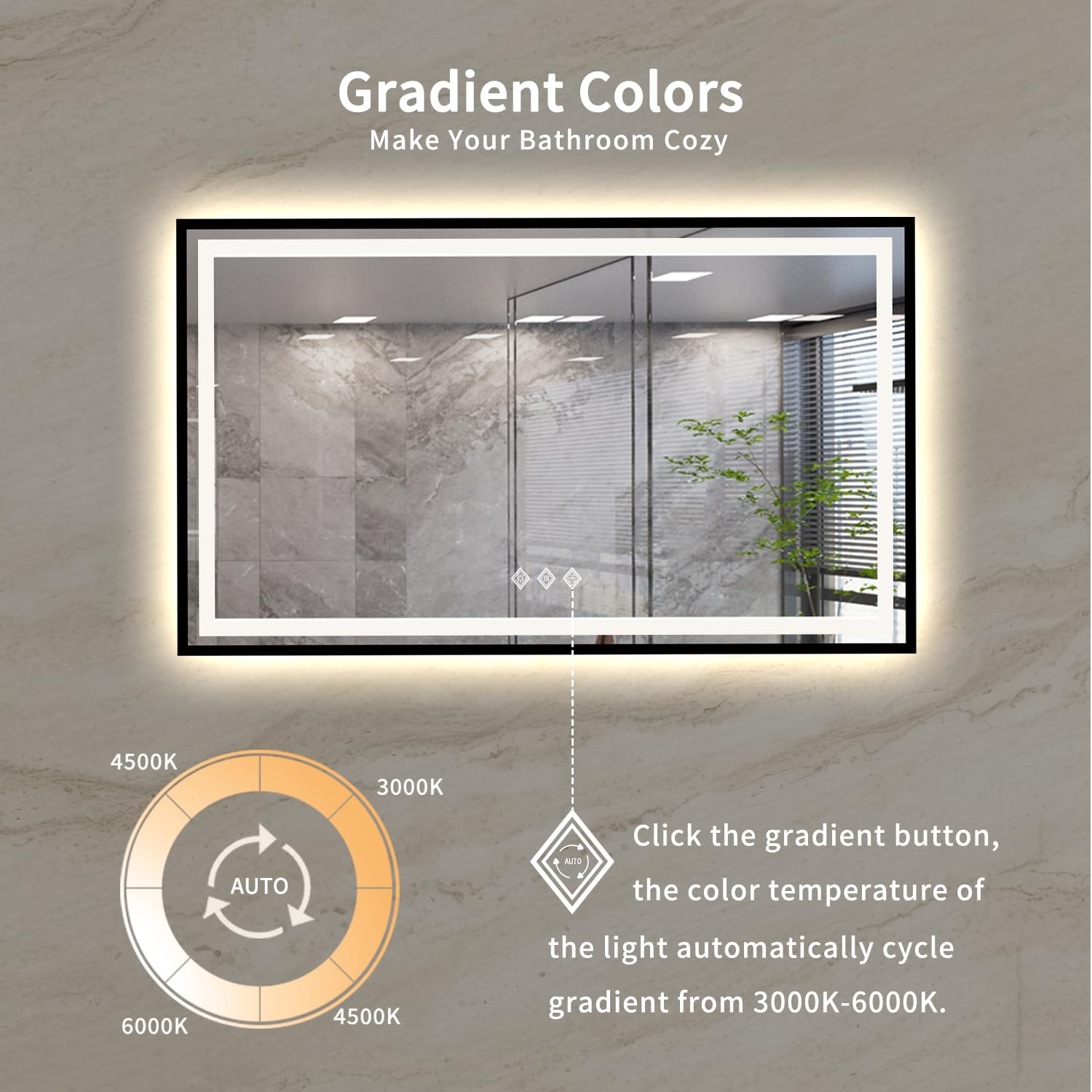 Transform your bathroom with this sophisticated gradient front and backlit LED mirror. Featuring advanced anti-fog technology and customizable lighting, this wall-mounted vanity mirror combines functionality with elegant design.