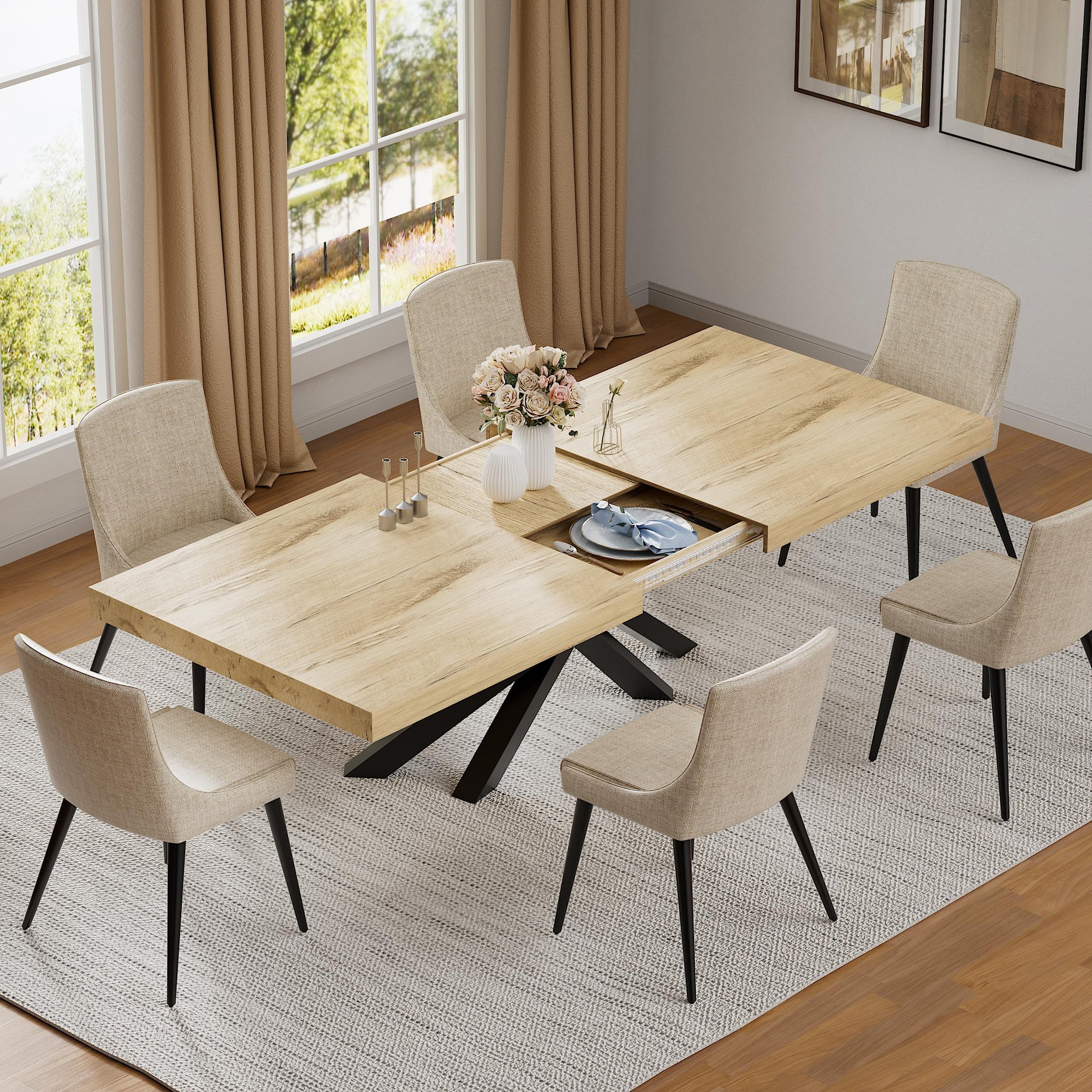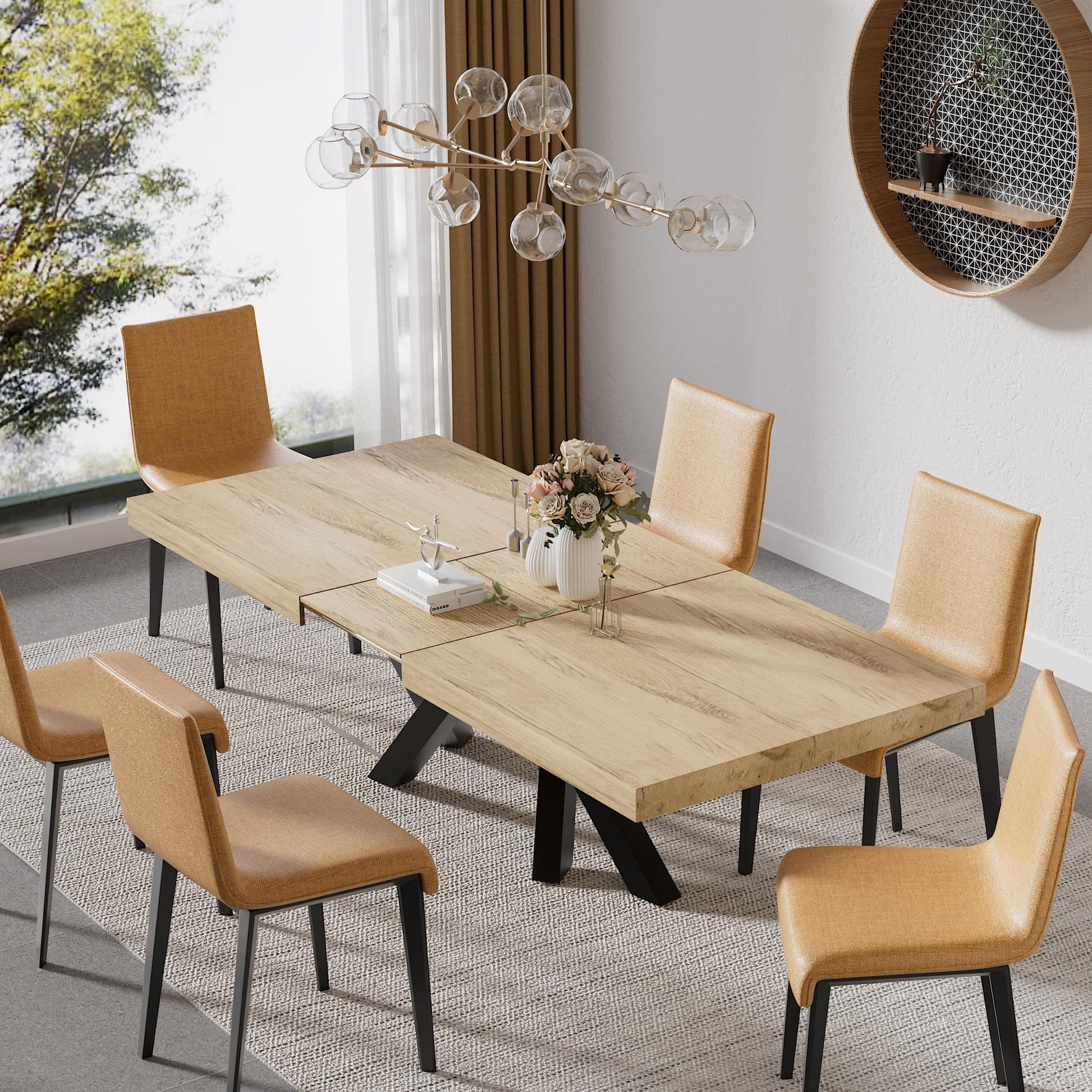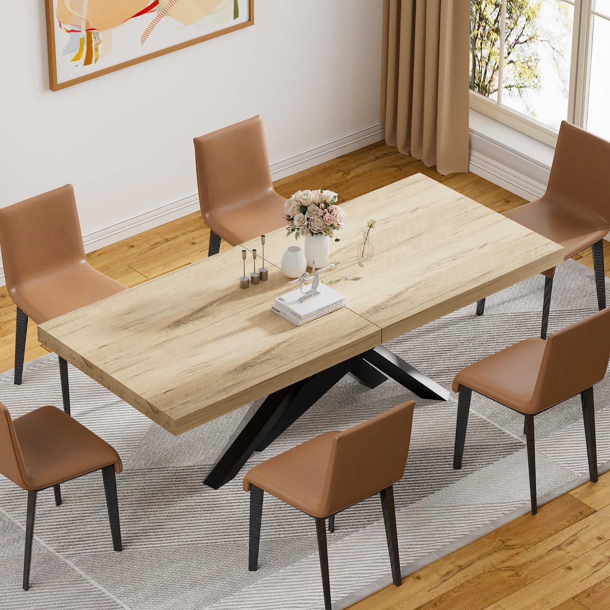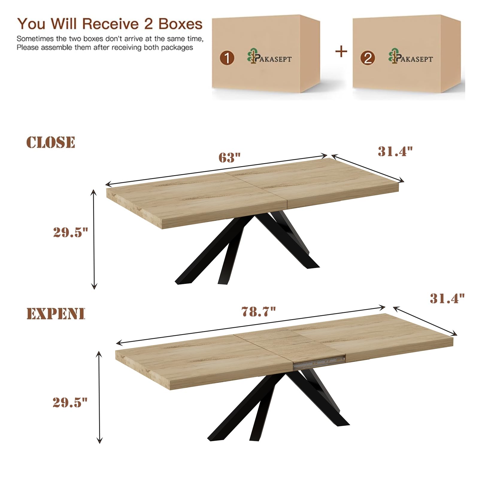 63"-79" Extendable Dining Room Table for 6 8 10, Modern Rustic Kitchen Expanding Table