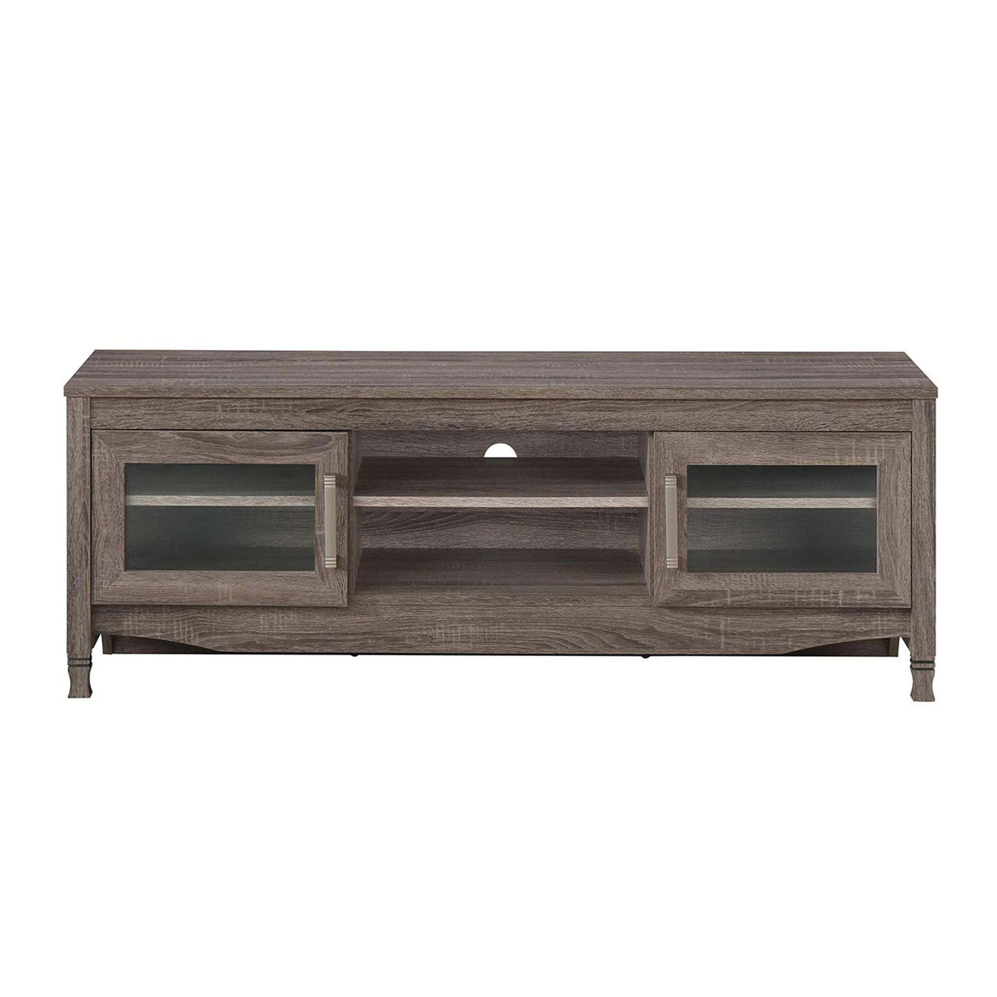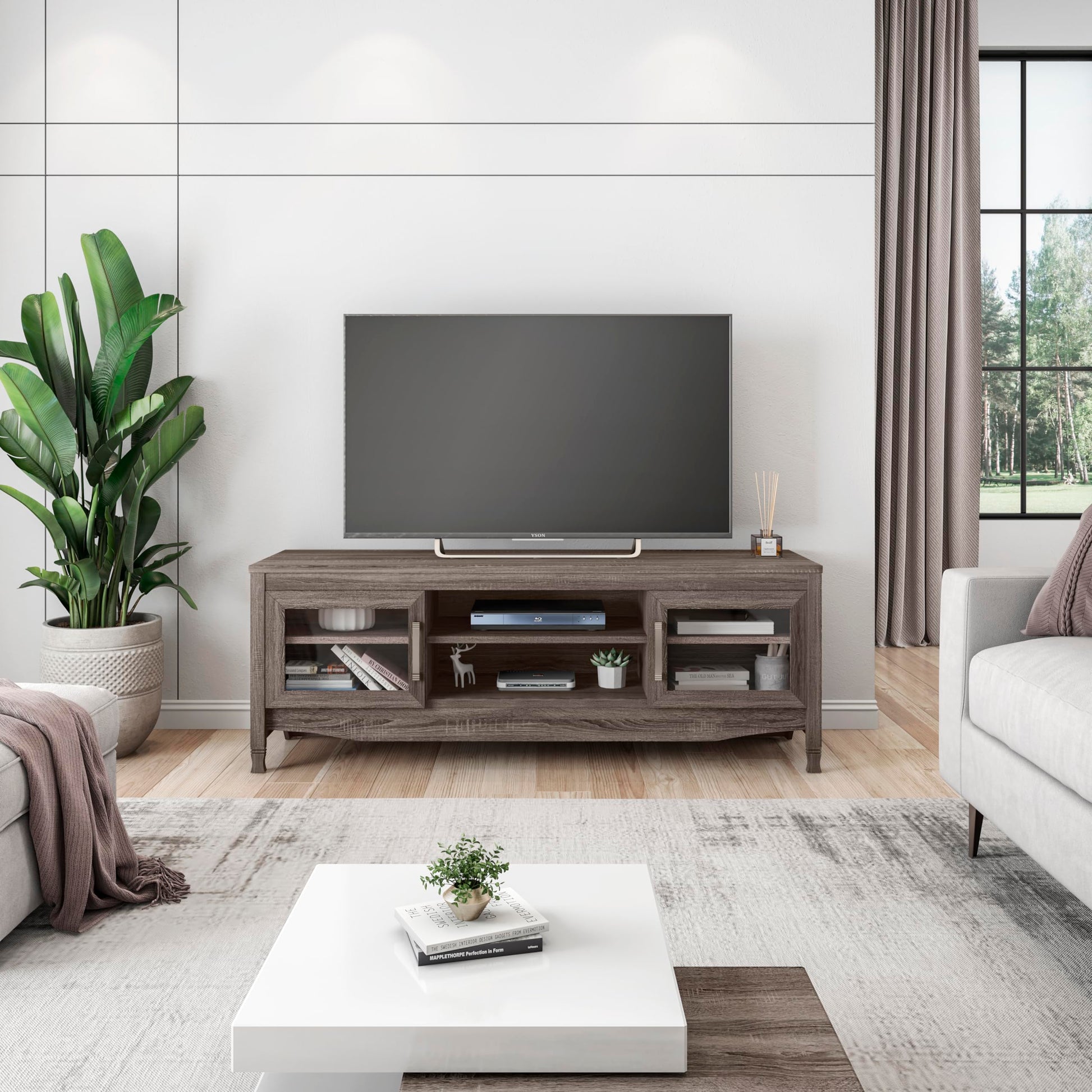 Storage & Glass Display Cabinets, Driftwood TV Stand for Living Room or Bedroom with Cable Management, Fits Screens up to 65 Inches When Measured Diagonally, Grey