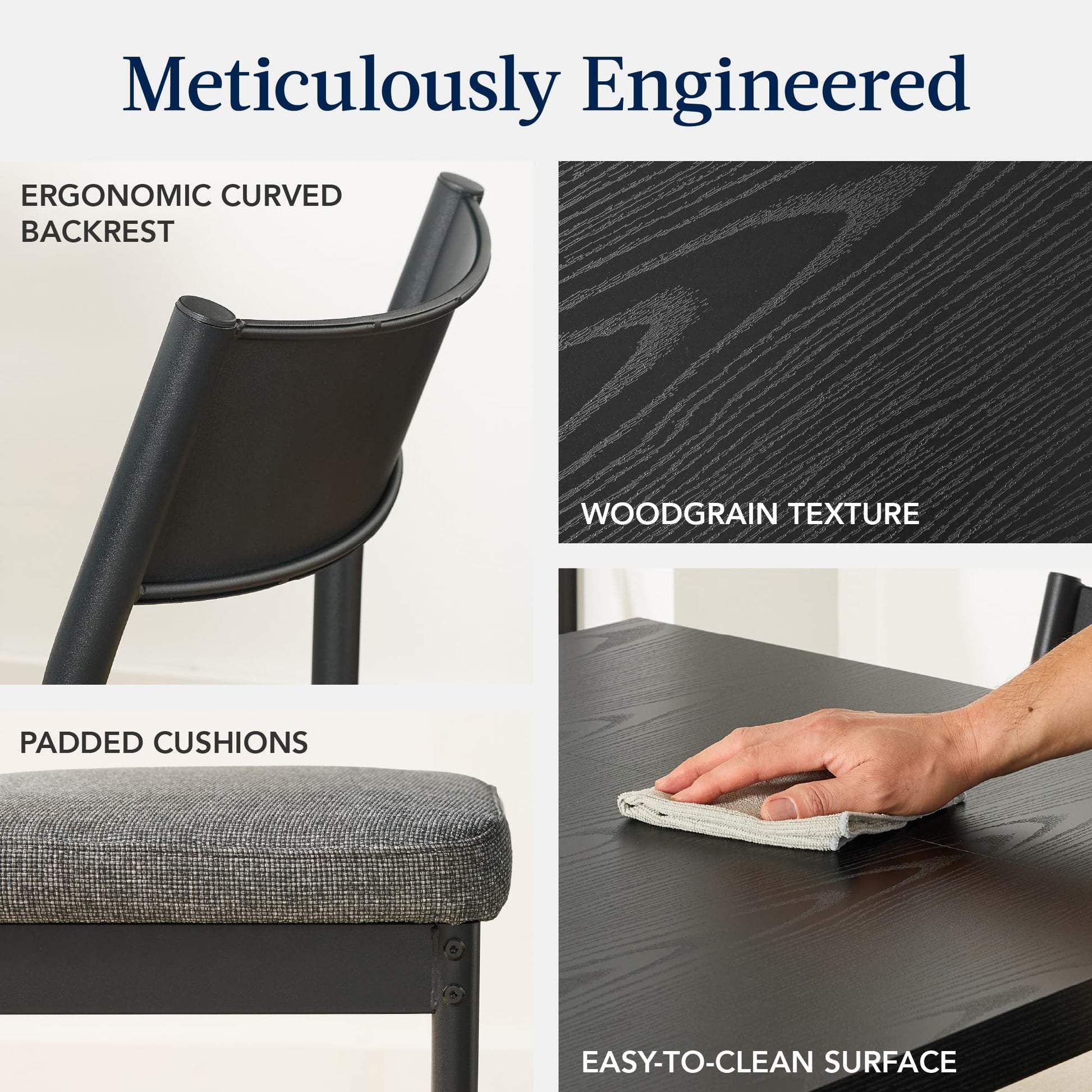 Crafted with attention to detail, this dining ensemble features a sophisticated black and gray color palette that complements a wide range of interior styles. The durable metal construction ensures long-lasting performance, while the upholstered seating adds a touch of refinement to your dining experience.