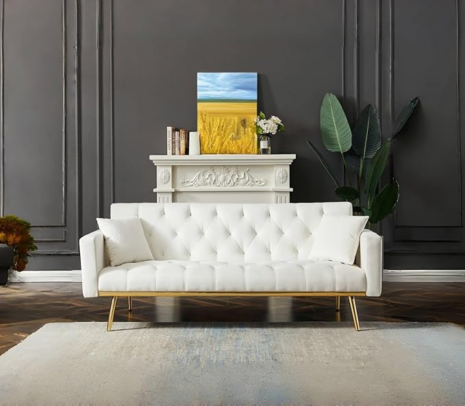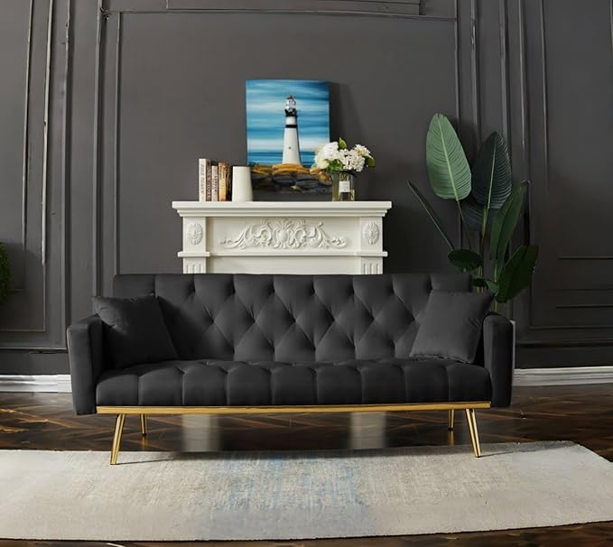 - HIGH QUALITY: Featuring soft velvet fabric and 4 metal legs, this convertible futon sofa combines comfort and style for years of durable use in your living space.
