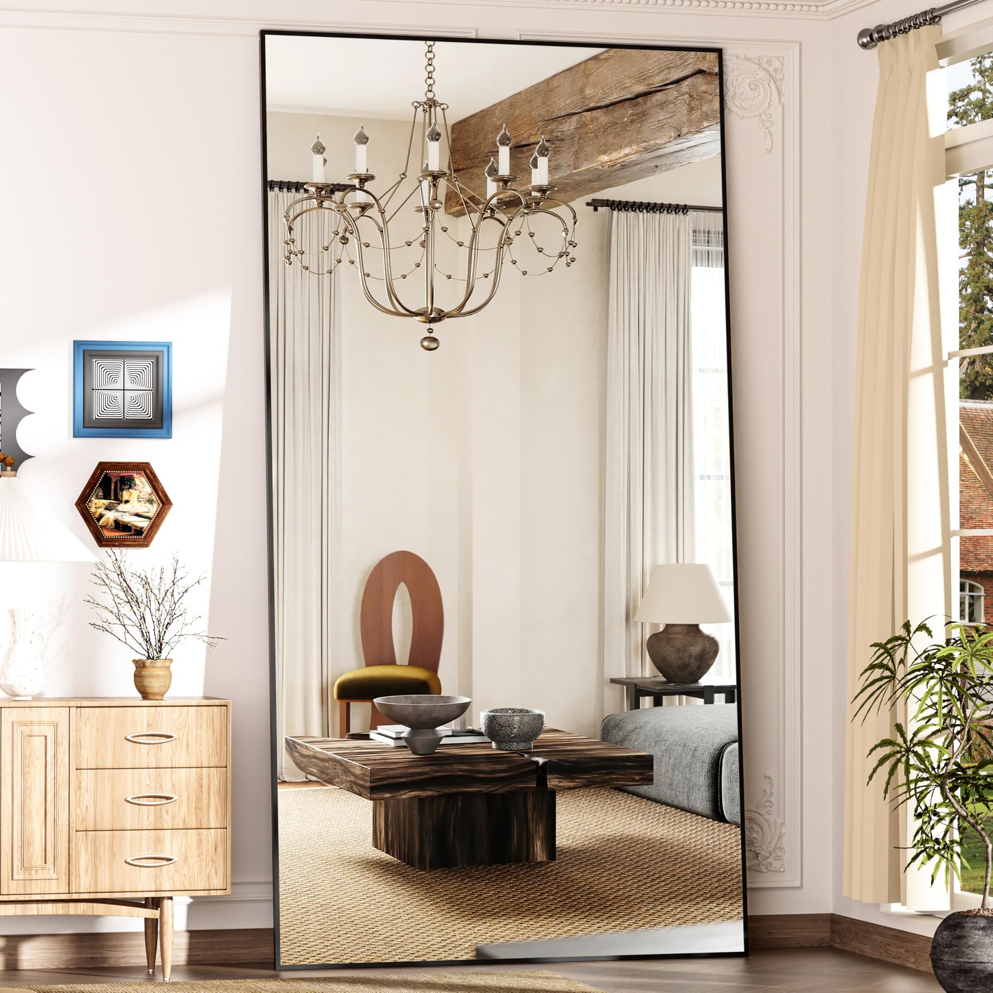 This full-length mirror offers exceptional clarity and a commanding presence in any room. The distortion-free glass ensures you see yourself exactly as you are, while the substantial size provides complete head-to-toe visibility. Whether you're checking your outfit before heading out or creating the illusion of more space in your room, this mirror delivers both form and function.