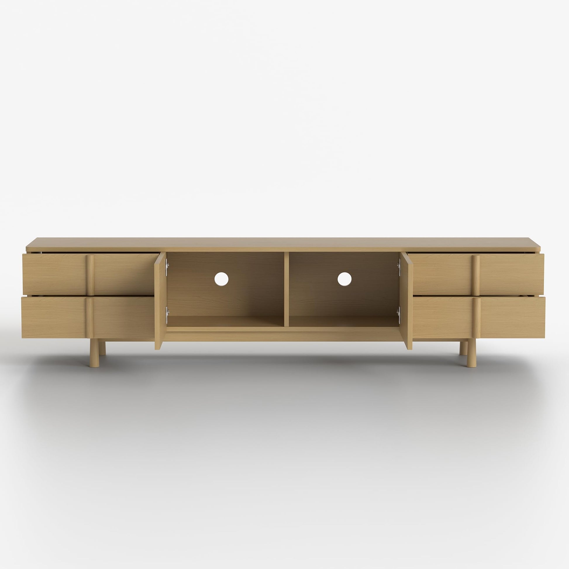 86.81" Modern TV Stand with Solid Wood Legs and Adjustable Storage