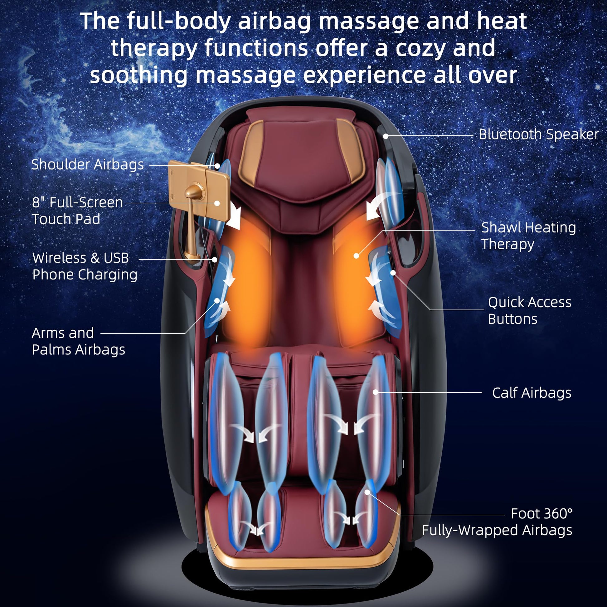 - 4D×3D Dual Back Massage Mechanism Experience deep tissue relief with our dual-core system and customizable massage intensity.
