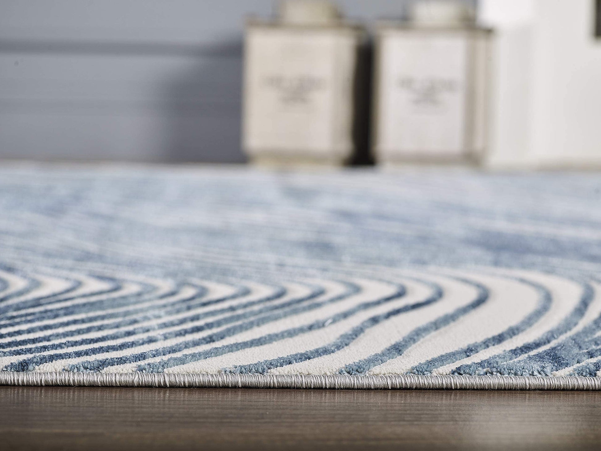 Abani Rugs Contemporary Wave Print 6' X 9' Rectangle Area Rug, Vista Collection - Modern Blue & White Turkish Accent Rug