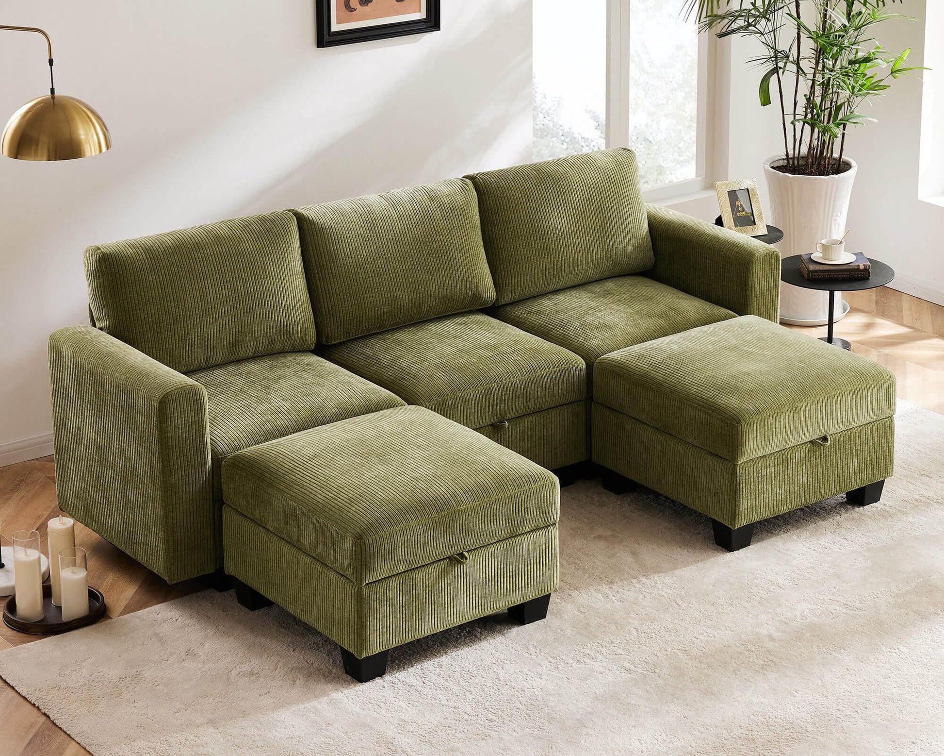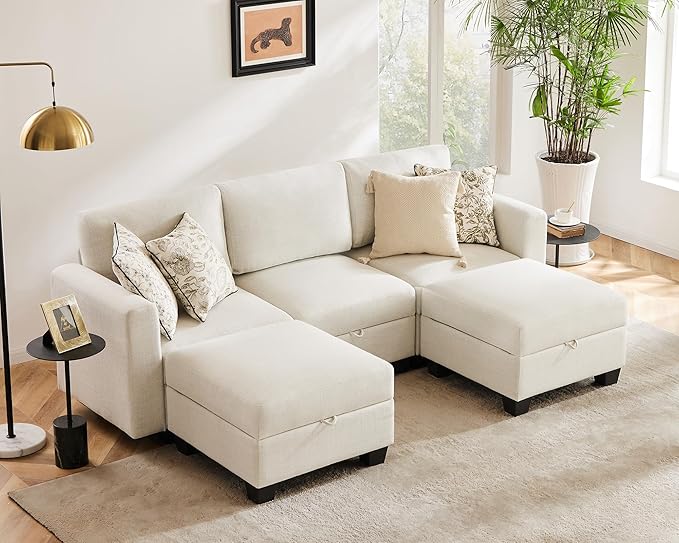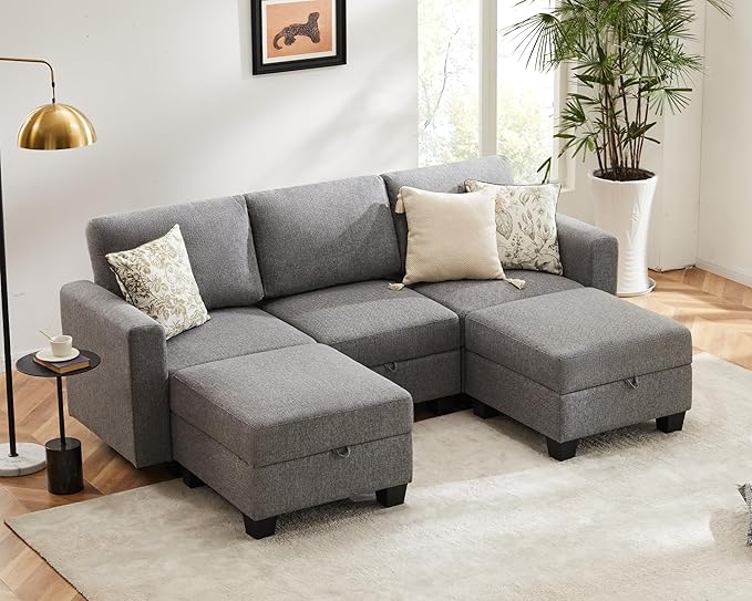 - STYLISH AND MODERN: Our modular sectional couches with large storage seats are designed to enhance any contemporary décor. The sleek lines and premium material give it a sophisticated and elegant look that will impress your guests.