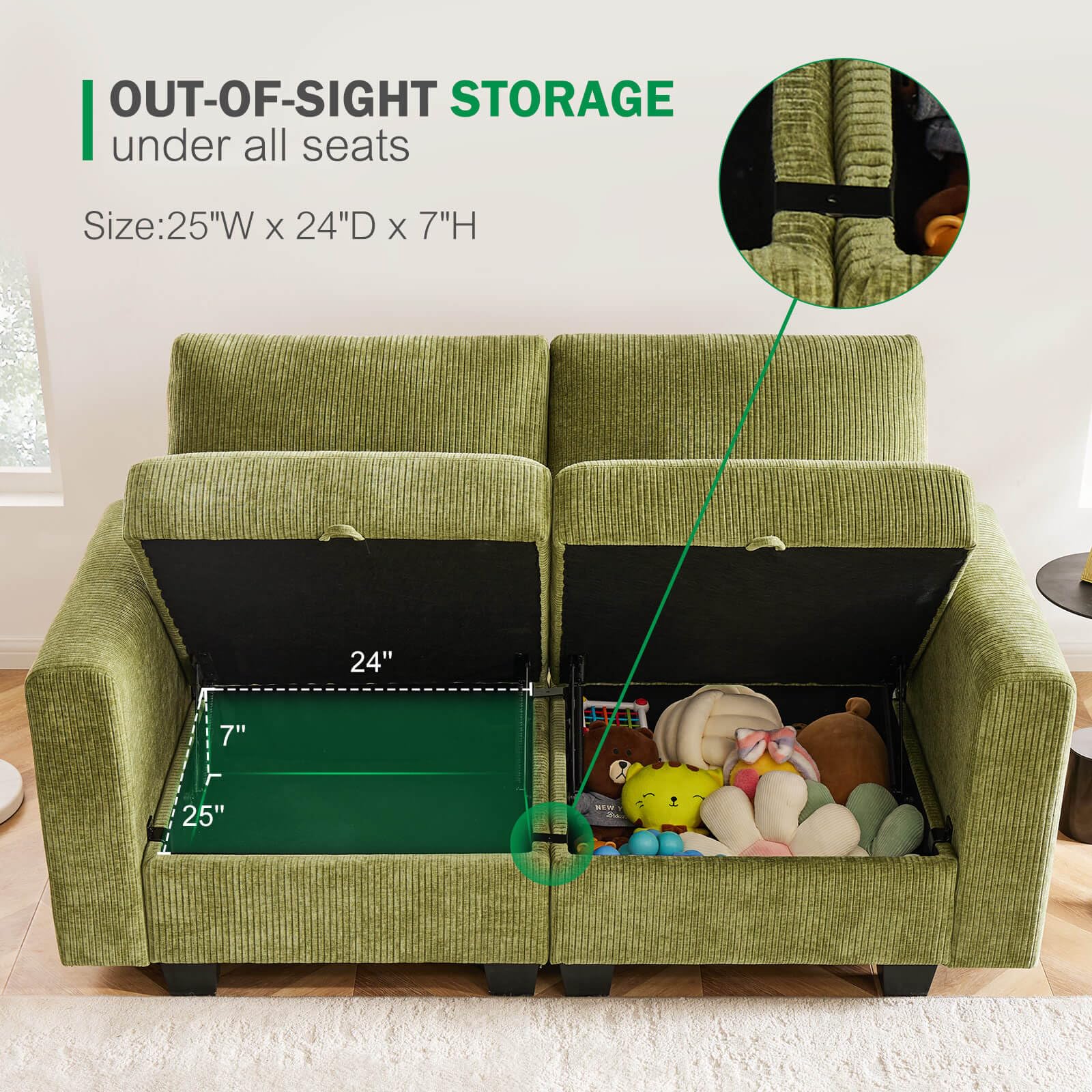 - AMPLE STORAGE SPACE: Maximize your living room's functionality with the built-in storage space under each seat. Conveniently store blankets, pillows, or other essentials within easy reach yet out of sight. Say goodbye to cluttered living spaces!