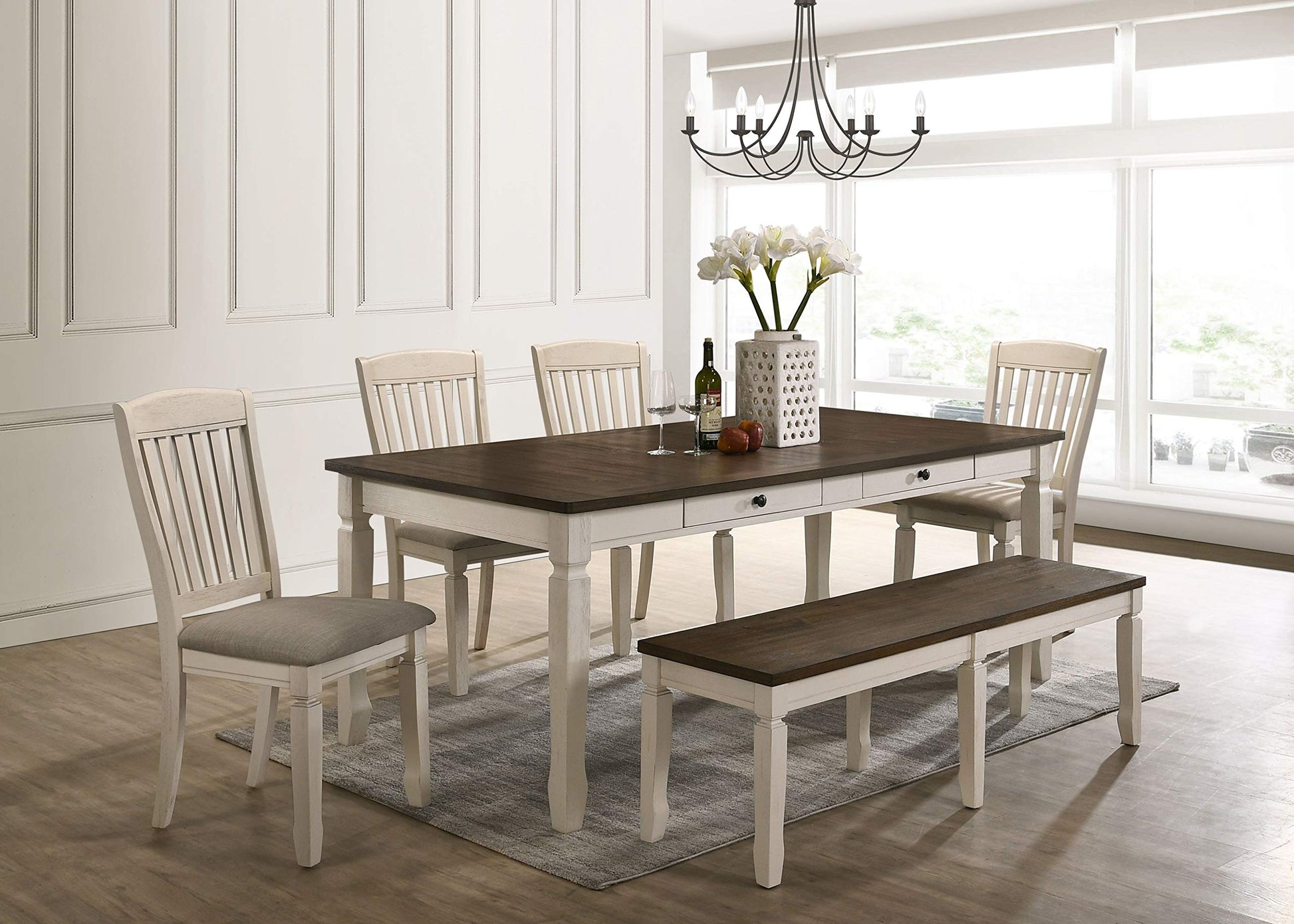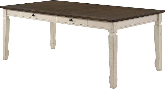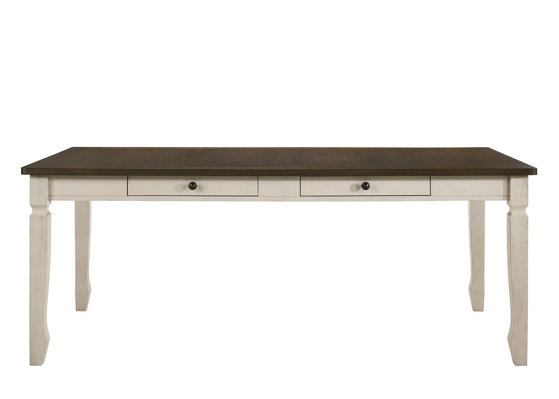 Fedele 2-Drawer Rectangular Wooden Dining Table in Weathered Oak and Cream