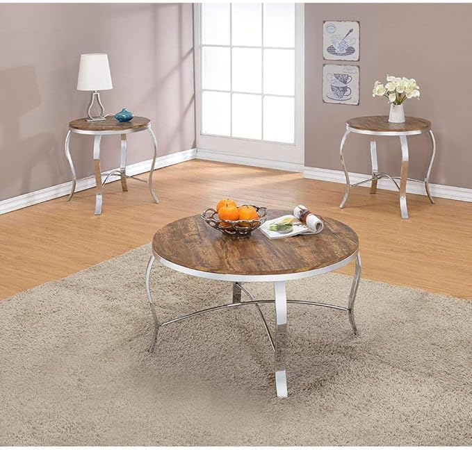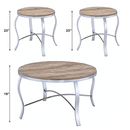 Malai 3-Piece Coffee/End Table Set in Weathered Light Oak and Chrome