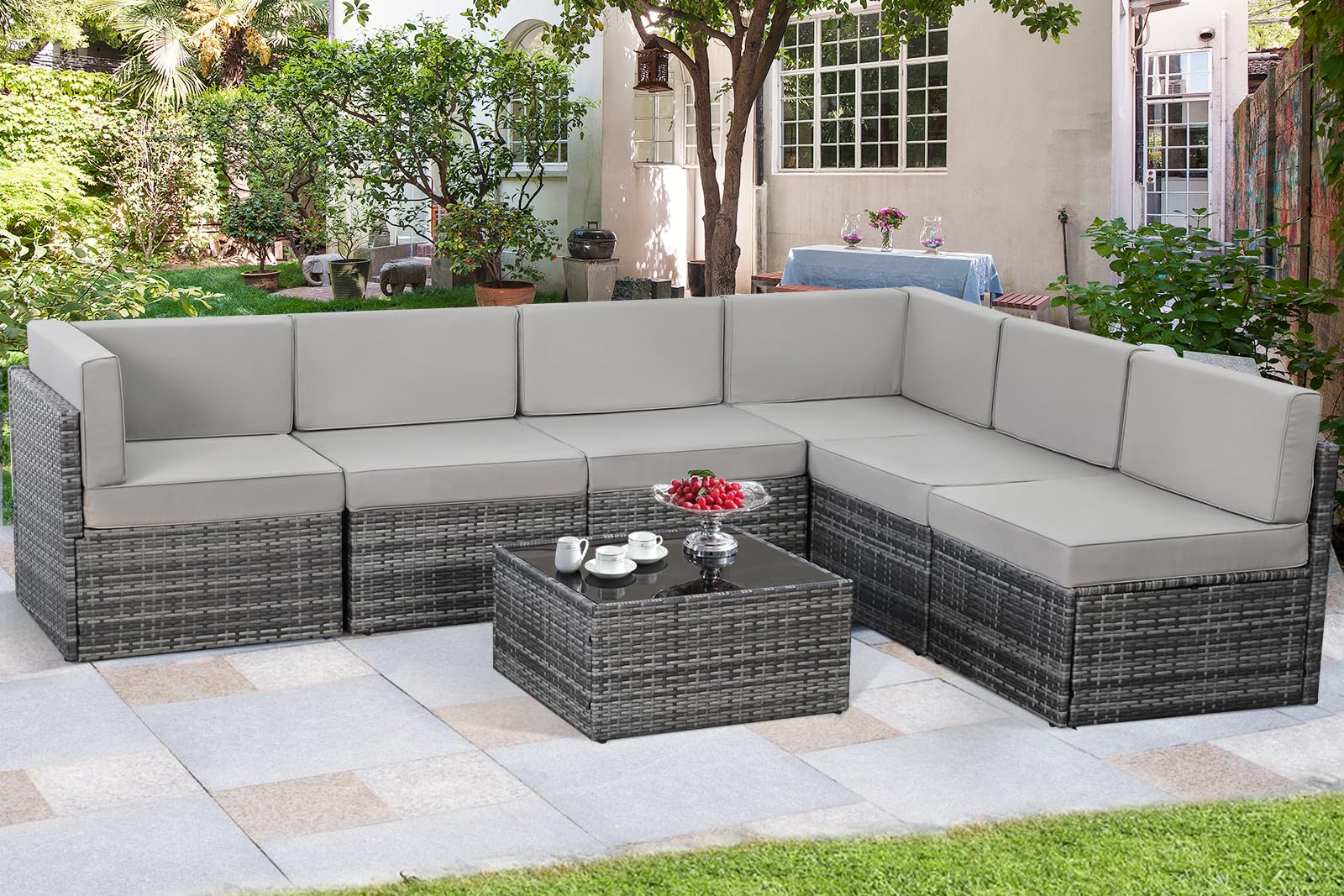 7 Piece Outdoor Patio Furniture Set, Outdoor Sectional Conversation Furniture Chair