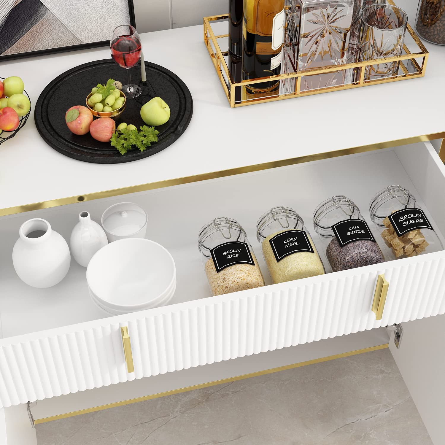 - Sufficient Storage Space This sideboard cabinet features 2 tier shelf behind the easy open doors, which can store all your dining, books, or media accessories. The full sized drawer is roomy and able to keep your other kitchen accessories easy to access, protect them from dust