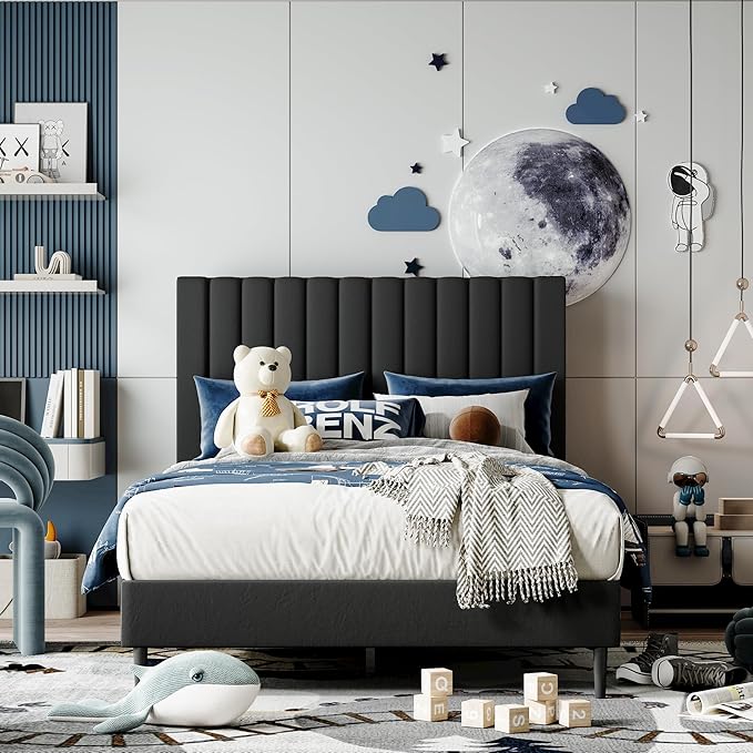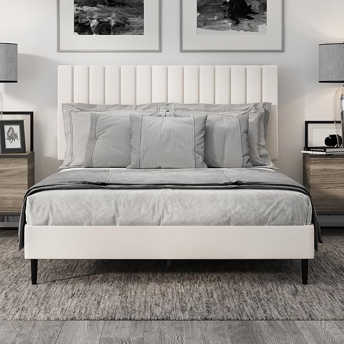 - Velvet Headboard:Using a modern vertical channel headboard design, smooth velvet and soft foam wrap the entire bed frame comfortably and elegantly aesthetically, suitable for any style of bedroom.