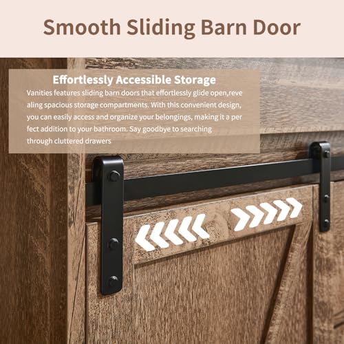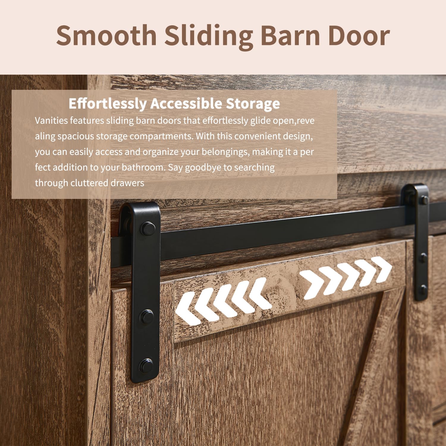 - THOUGHTFUL DESIGN: Sliding Barn Doors and Cabinet tracks of the Bathroom Vanity With Sink are made of sturdy, durable hardware to ensure long-term reliability for everyday use. The modern black metal handles feature a water-resistant coating to prevent rust, and the smooth groove design allows the drawers to open and close easily and securely