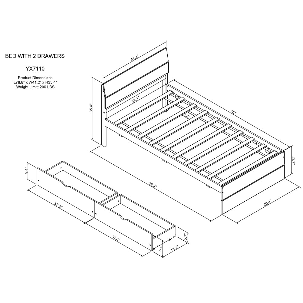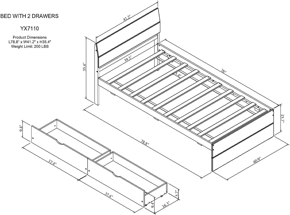 - Product Dimensions: Measuring at 78.81"L x 41.22"W x 35.39"H, this bed includes slats that eliminate the need for a box spring. Simply place your mattress on the slats for a comfortable sleeping experience (Mattress not included).