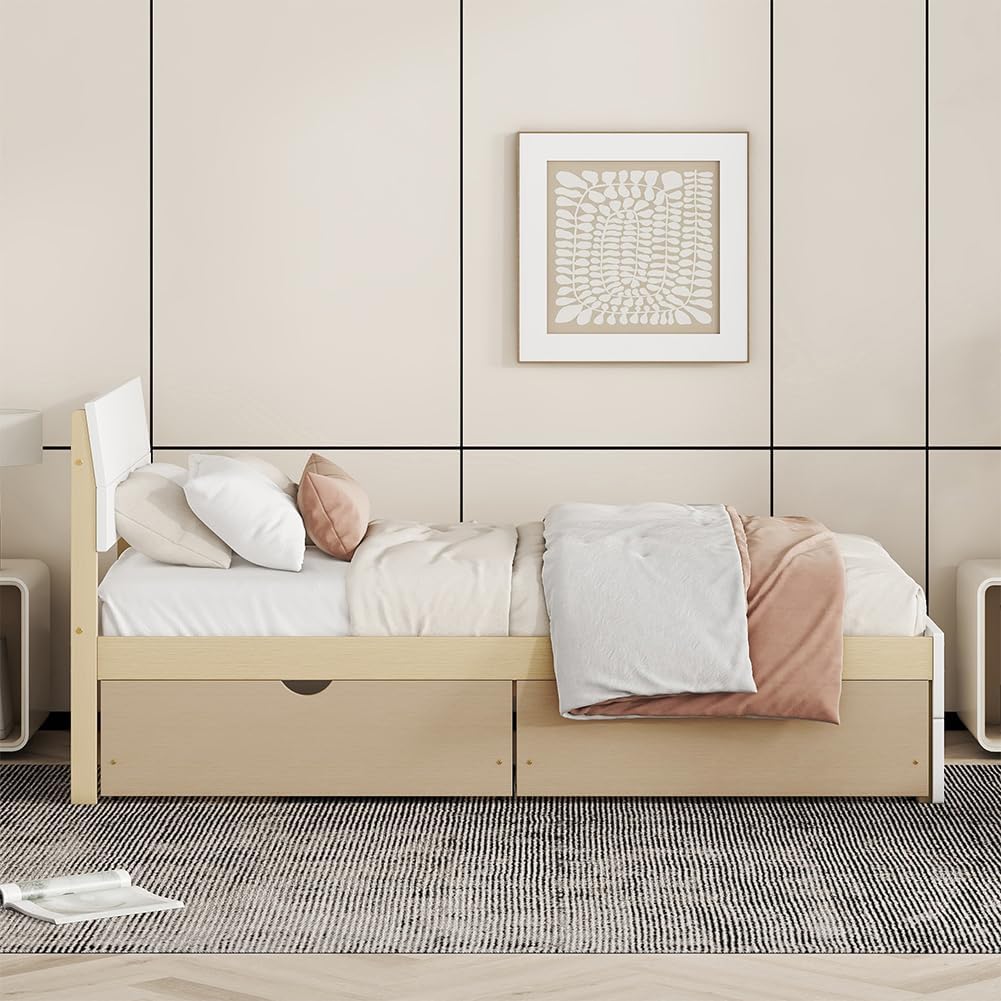 - Efficient Storage Solution: With two spacious storage drawers underneath, this bed offers ample space to store bedding, clothing, and other items, maximizing space utilization and providing convenient storage options.