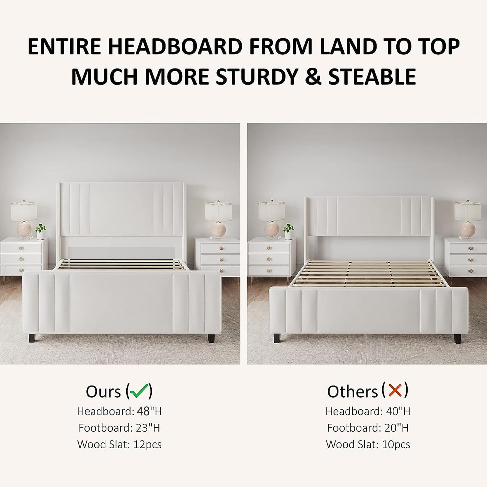Special Feature | No Box Spring Needed, 100% premium velvet, Elegant Footboard Included, Channel Tufted Headboard with Wingback |