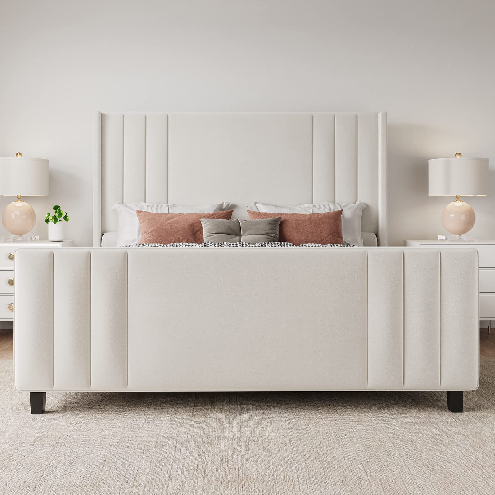 King Size Platform Bed Frame, Upholstered Bed with Vertical Channel Tufted Wingback Headboard & Footboard,