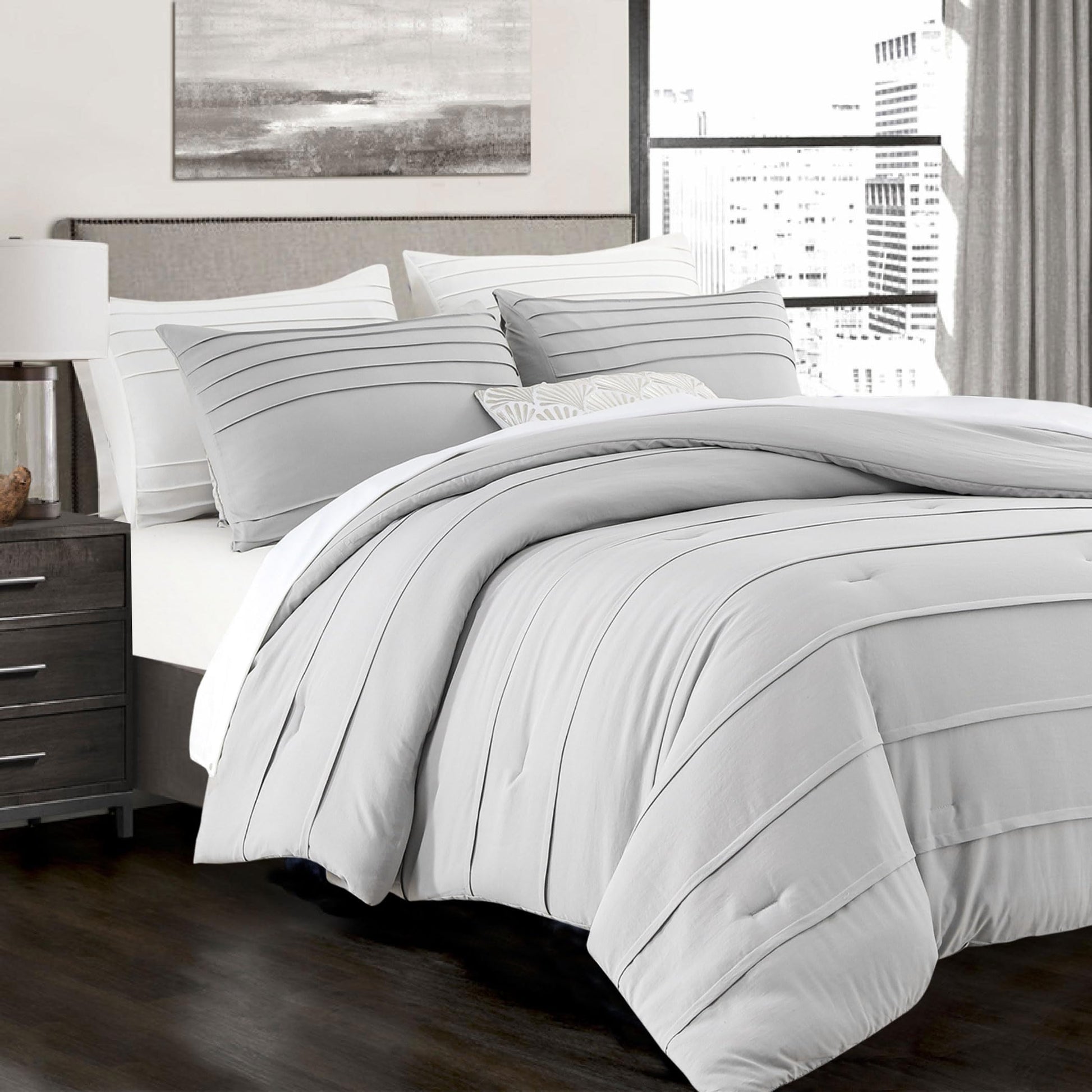 Grey Queen Comforter Set - 3 Pieces Pinch Pleat Bed Set, Down Alternative Bedding Sets