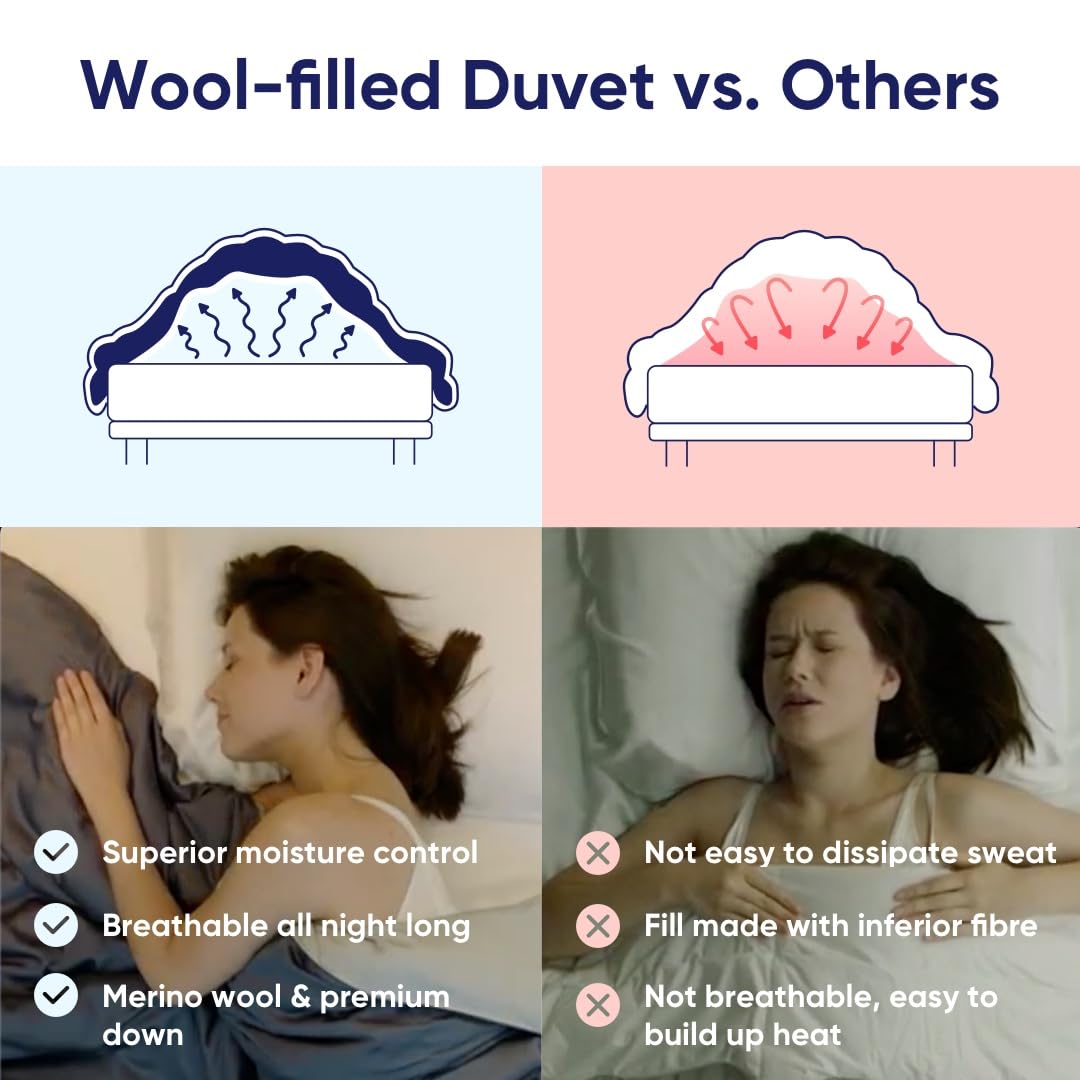 Experience superior comfort and climate control with this premium all-season comforter crafted from 100% New Zealand Merino wool. Designed specifically for hot sleepers, this luxurious quilt and duvet insert naturally regulates temperature and fights humidity throughout the night, ensuring restful sleep in any season.