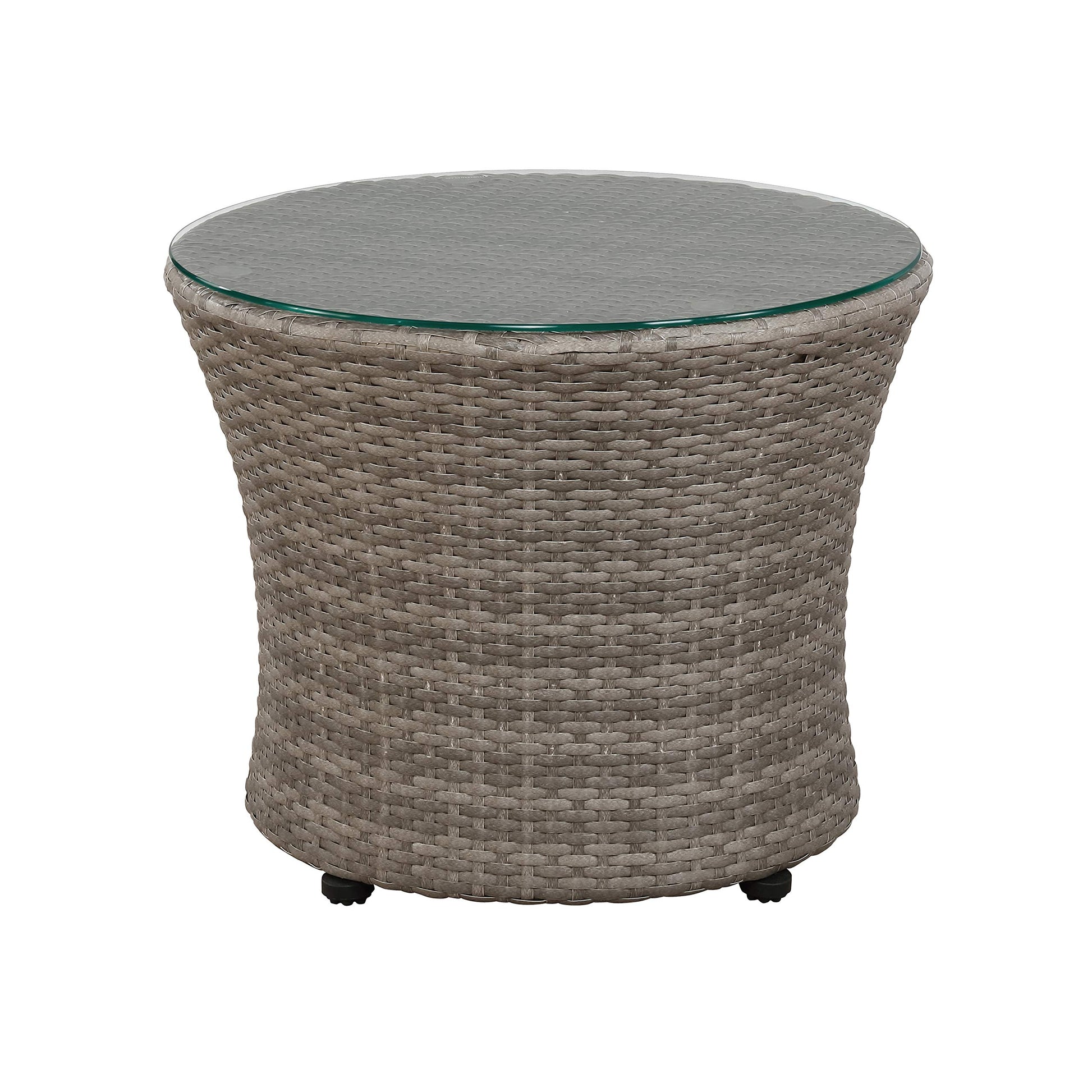 - 3 PIECE SET: Includes two round chairs with back cushions and a gorgeous 18-inch glass top table