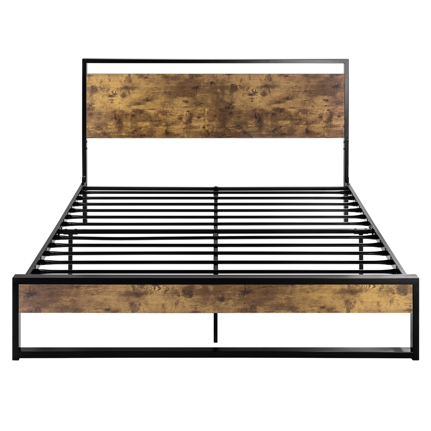Full Metal Bed Frame with Rustic Headboard & Footboard, Sturdy Frame Construction