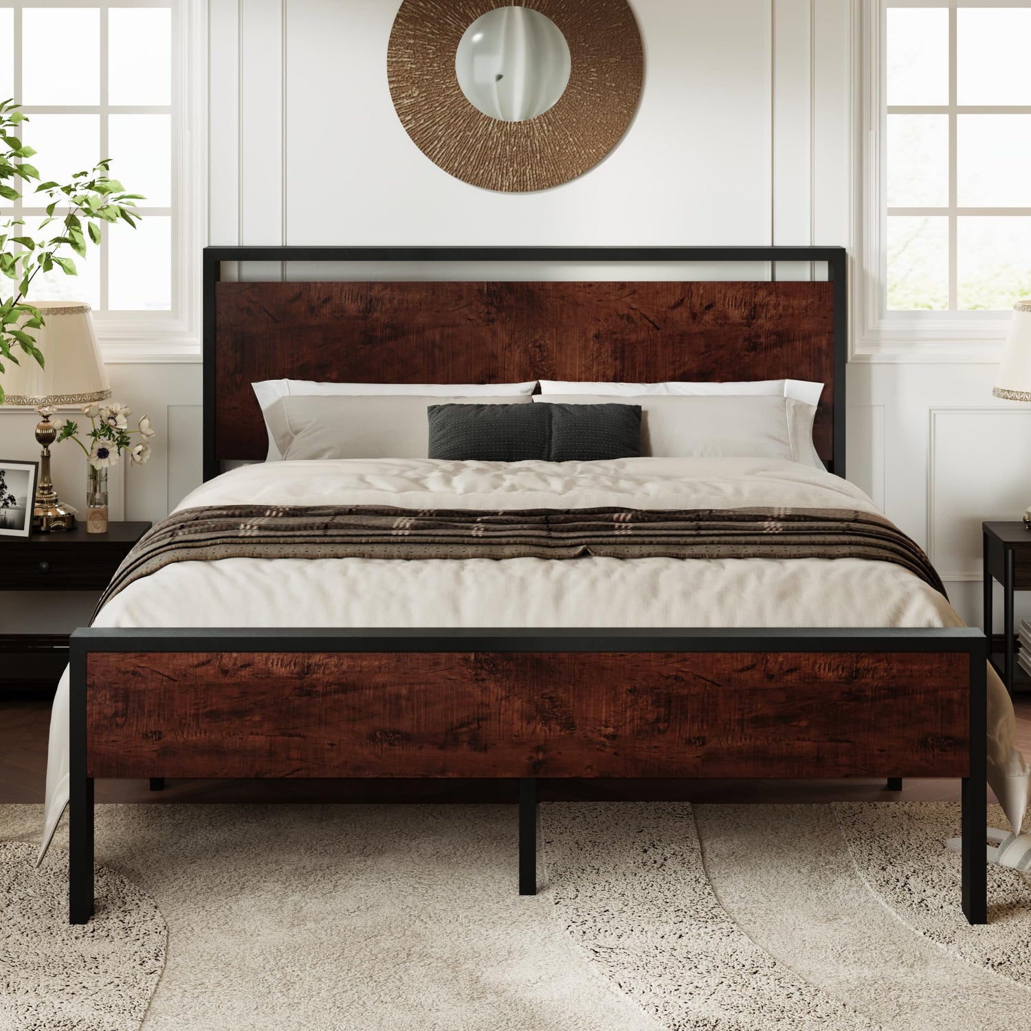 - Unique Design: The combination of rustic style headboard and footboard and retro frosted metal slats gives a strong industrial / rustic flair, enriching your room with industrial and unique individualism. The wood headboard consists of a Waterproof & Scratchproof wood board.