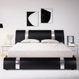 King Size Bed Frame with Iron Piece Decor, Faux Leather Upholstered Platform Bed - Black / Queen is backordered and will ship as soon as it is back in stock.