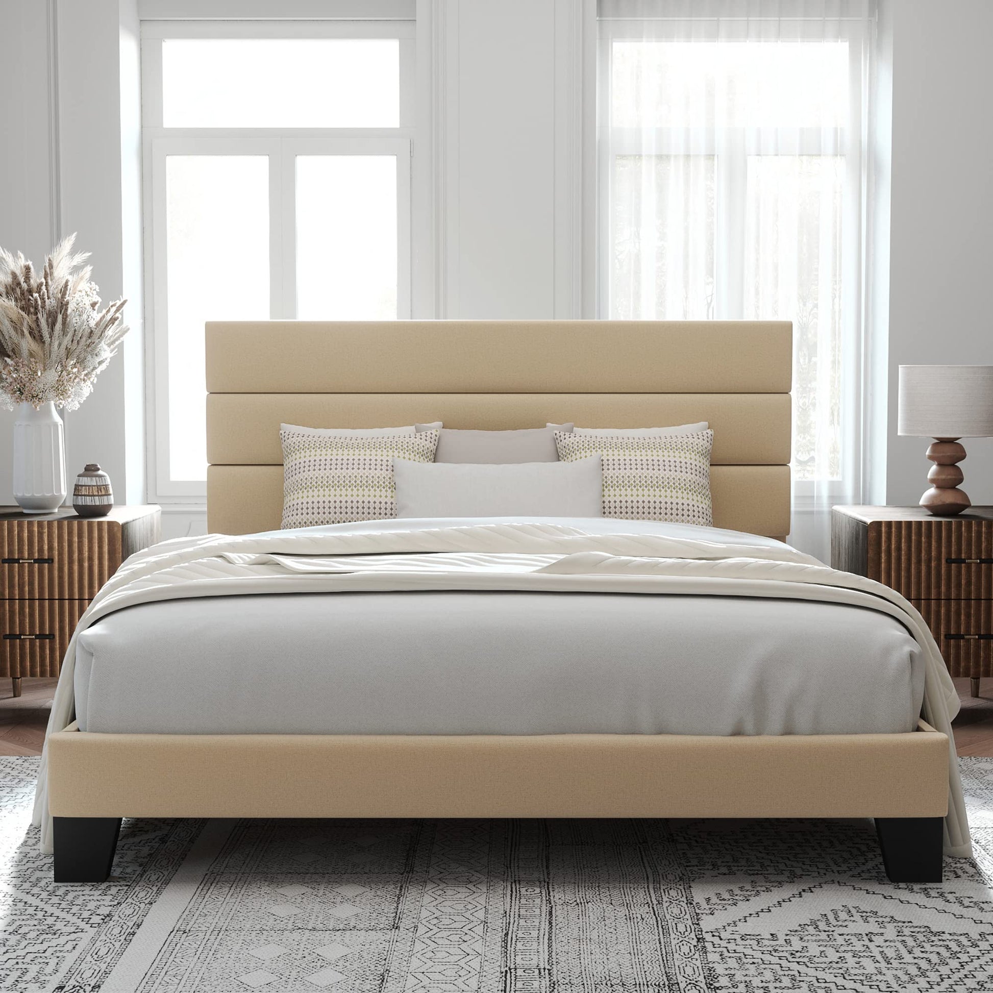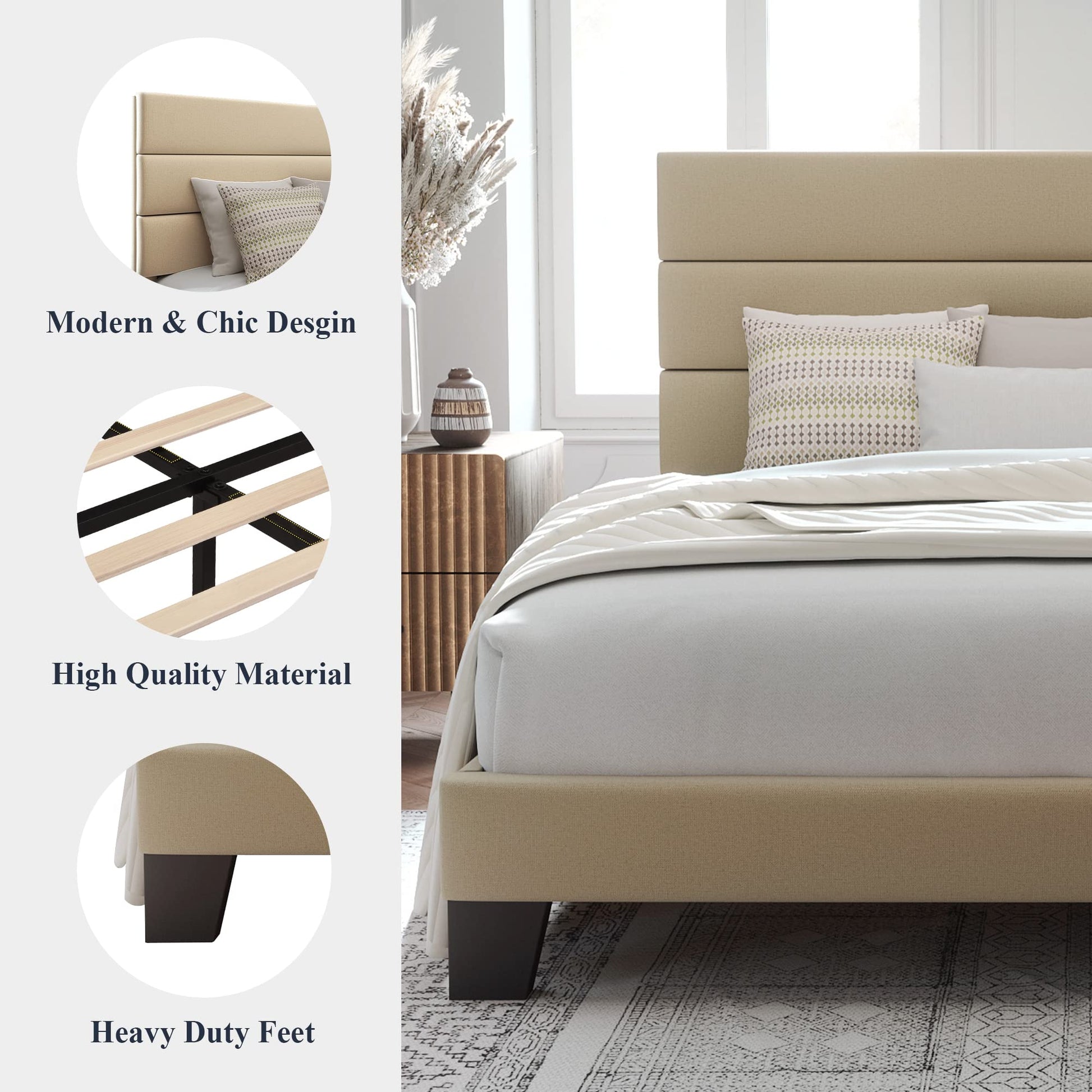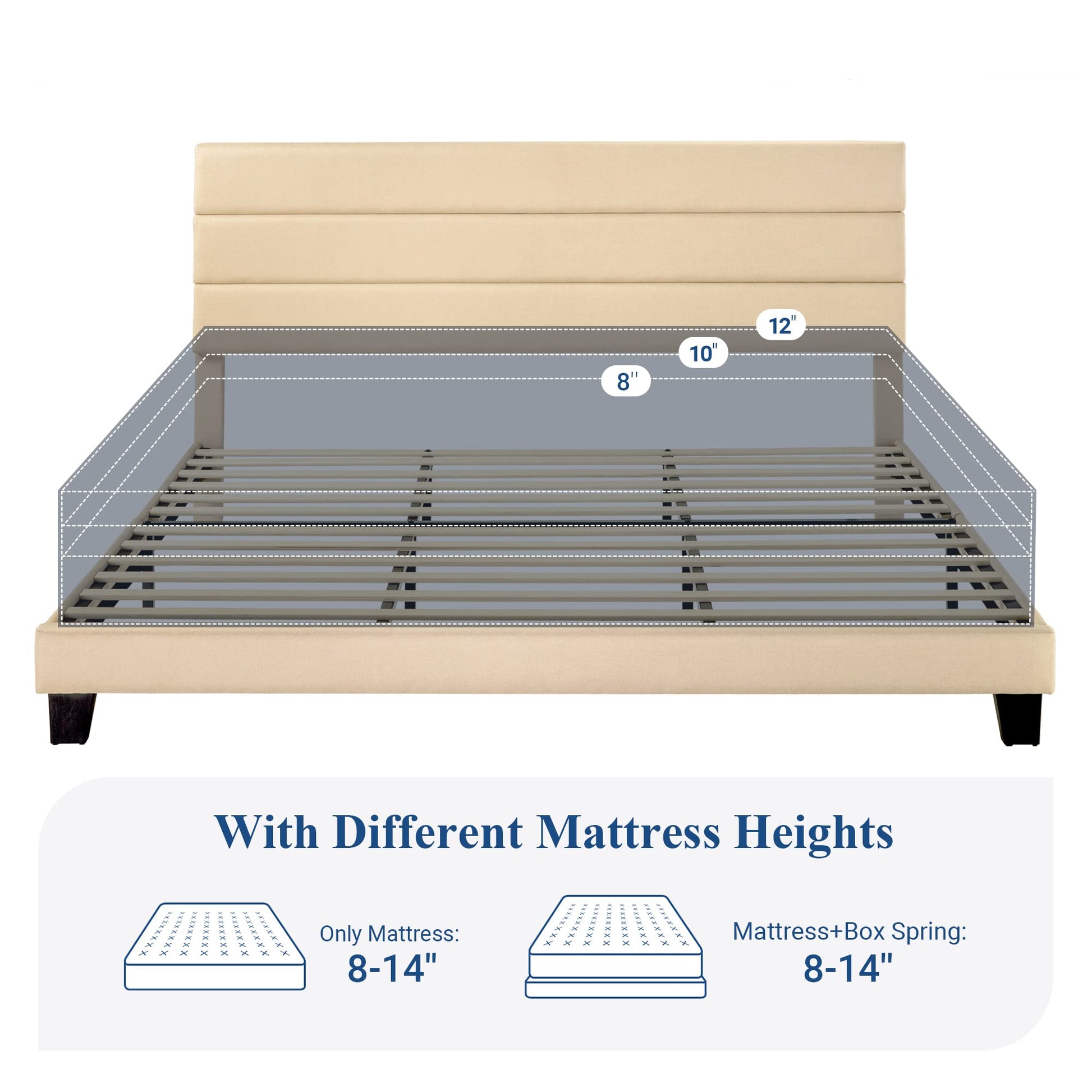 King Size Platform Bed Frame with Fabric Upholstered Headboard