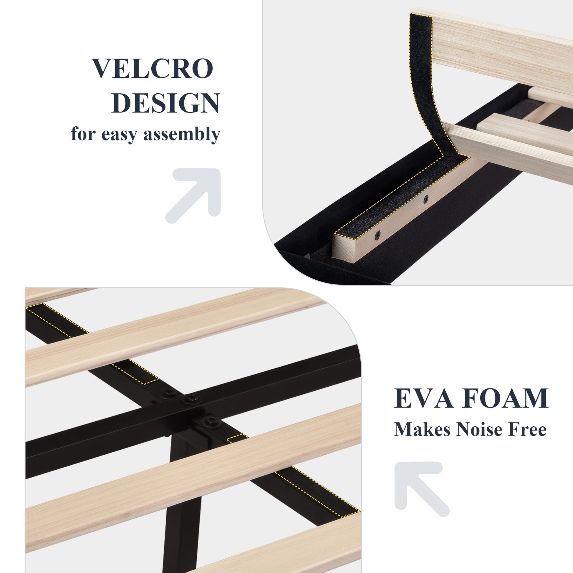 - No Box Spring Needed: Designed with solid wood slats, simple assembly, and the most important thing to note is the mattress doesn't slide around on its, memory foam or spring mattress without the need for a box spring.