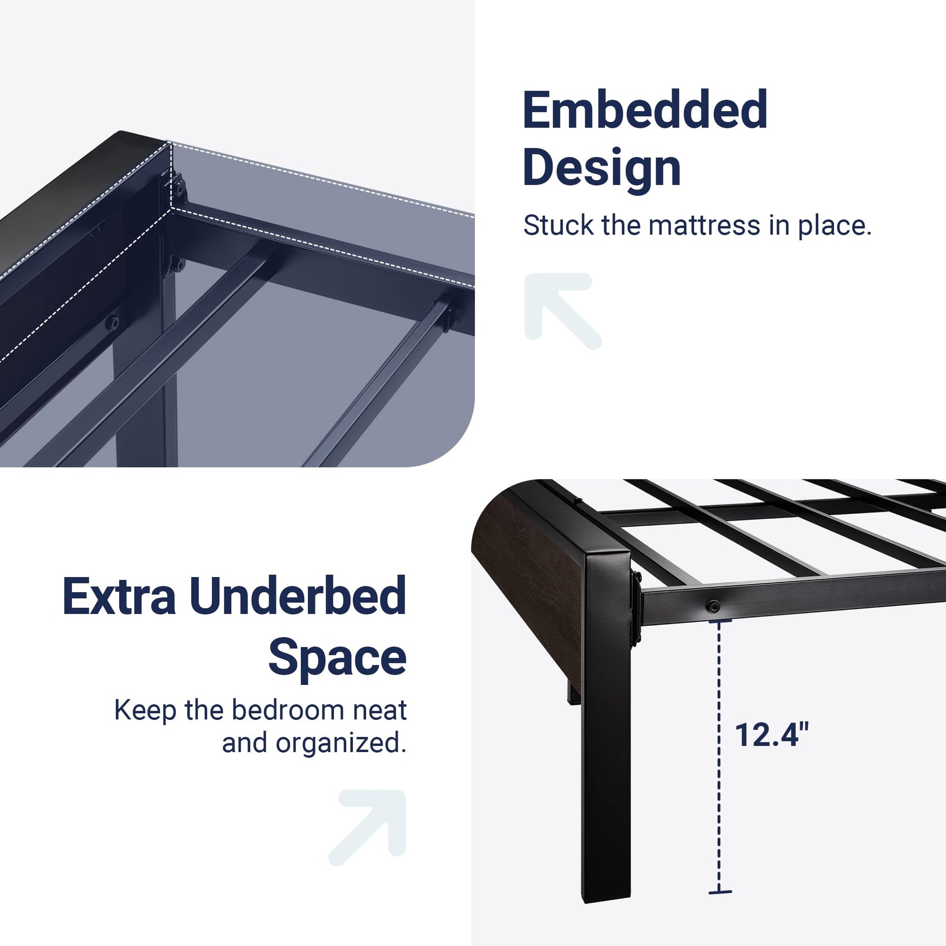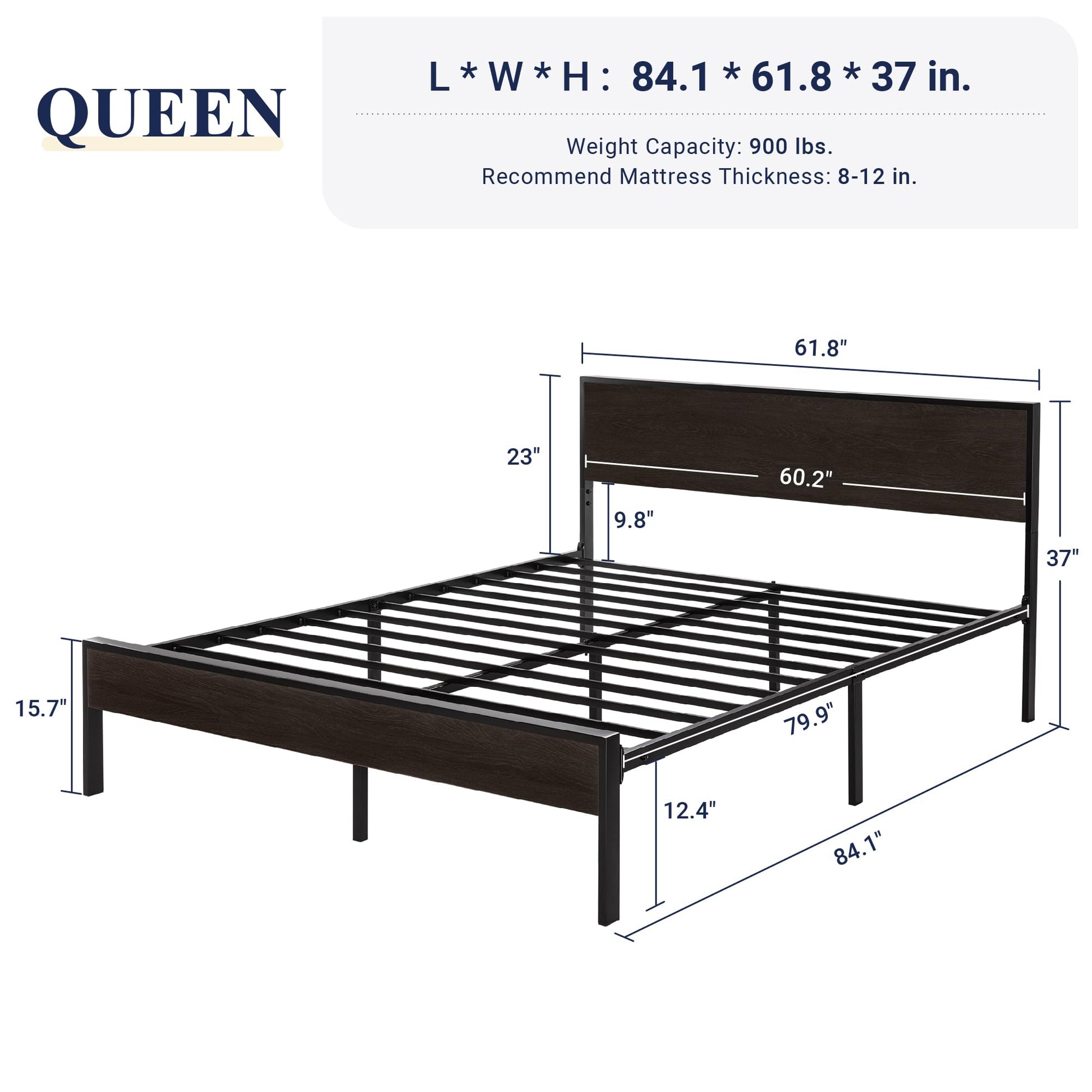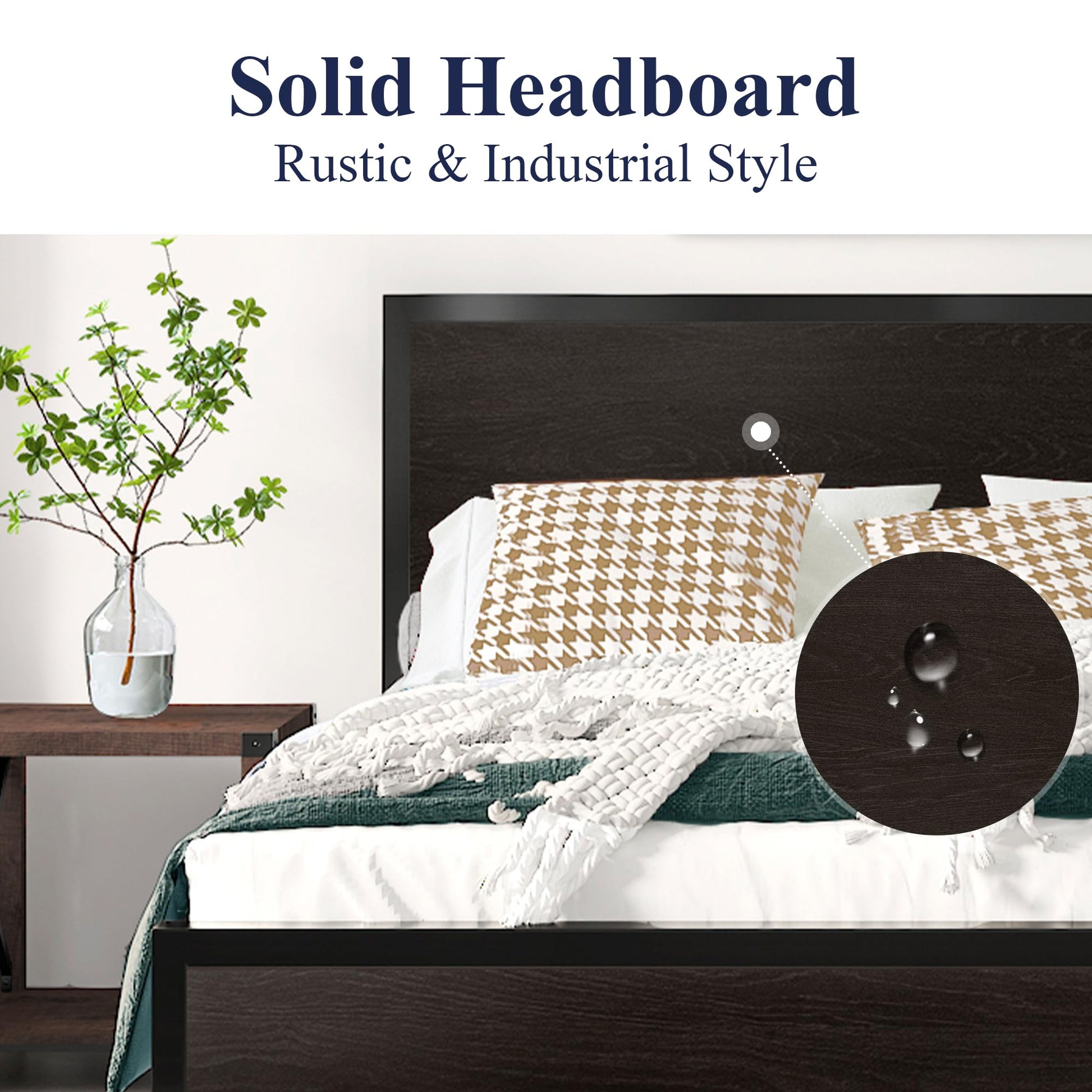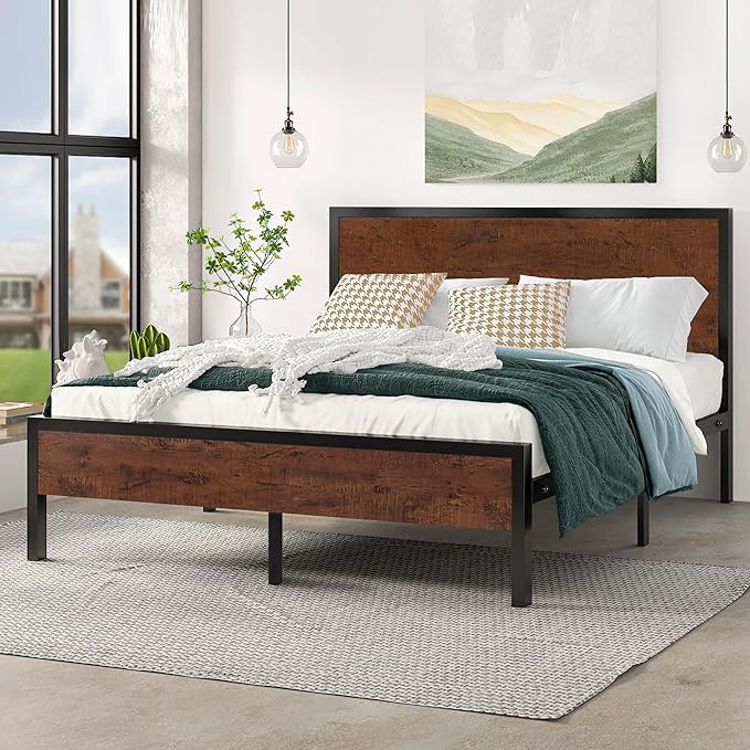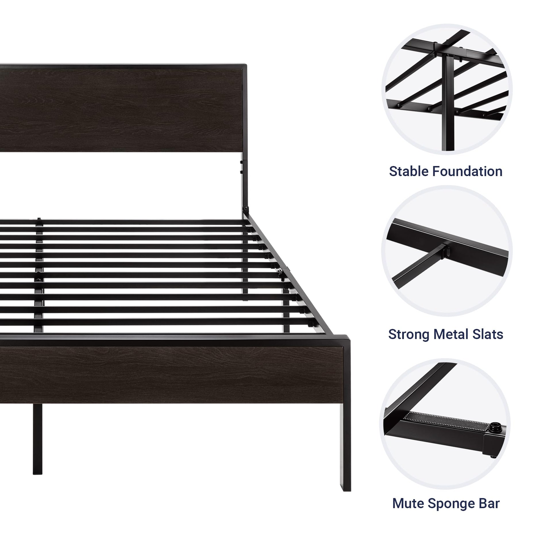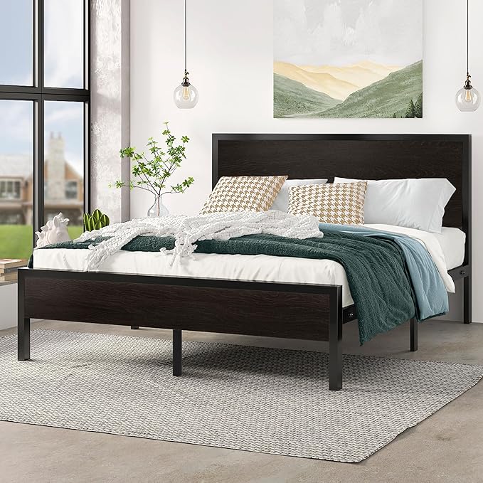 Queen Size Bed Frame with Wood Headboard and Footboard,
