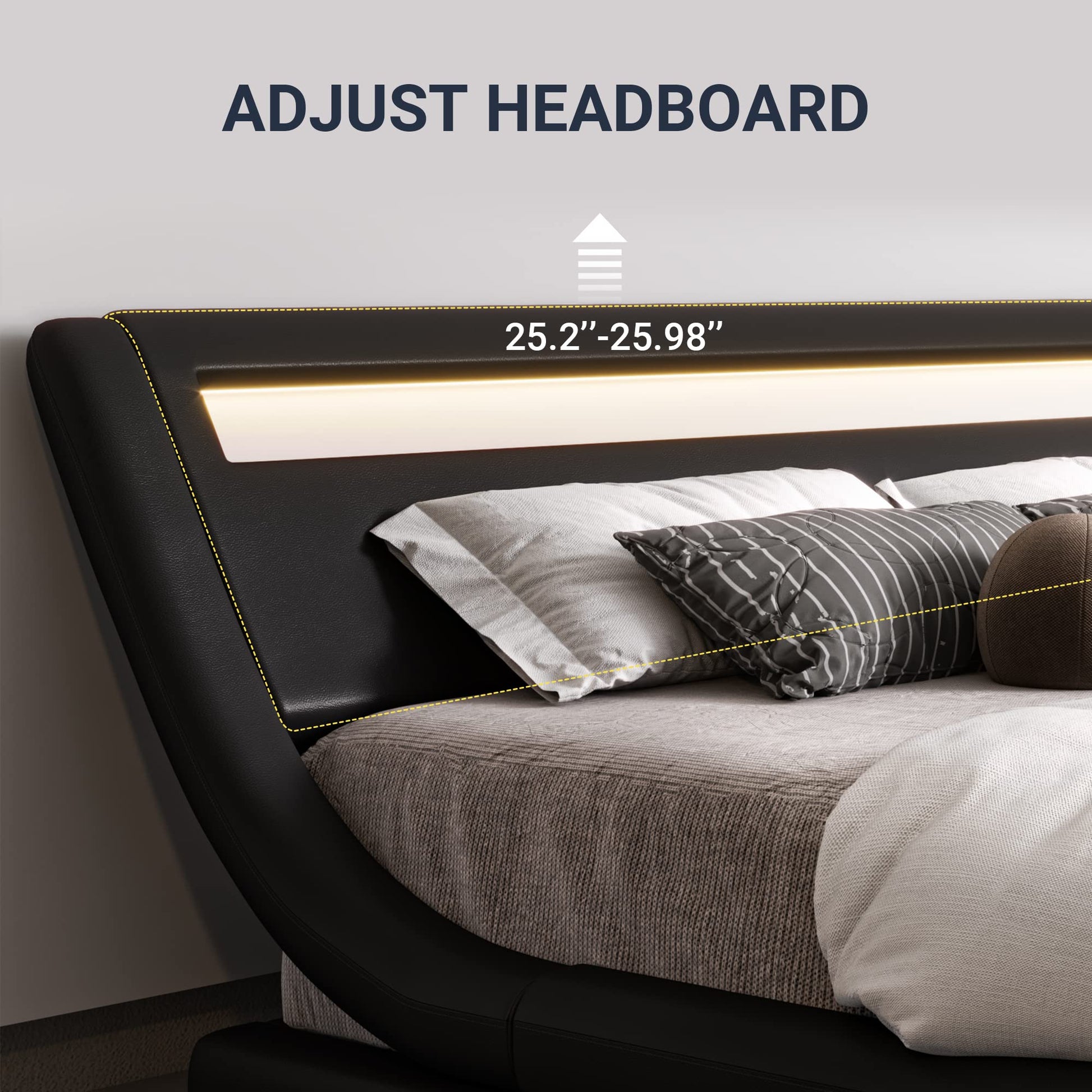 Queen Size LED Platform Bed Frame with Adjustable Headboard