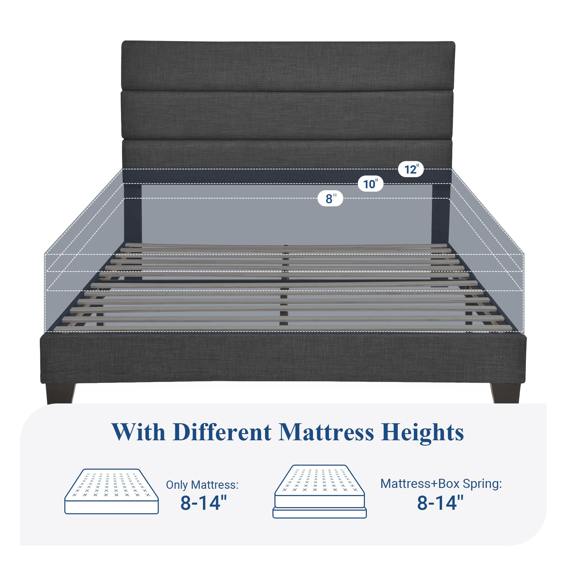 Queen Size Platform Bed Frame with Fabric Upholstered Headboard