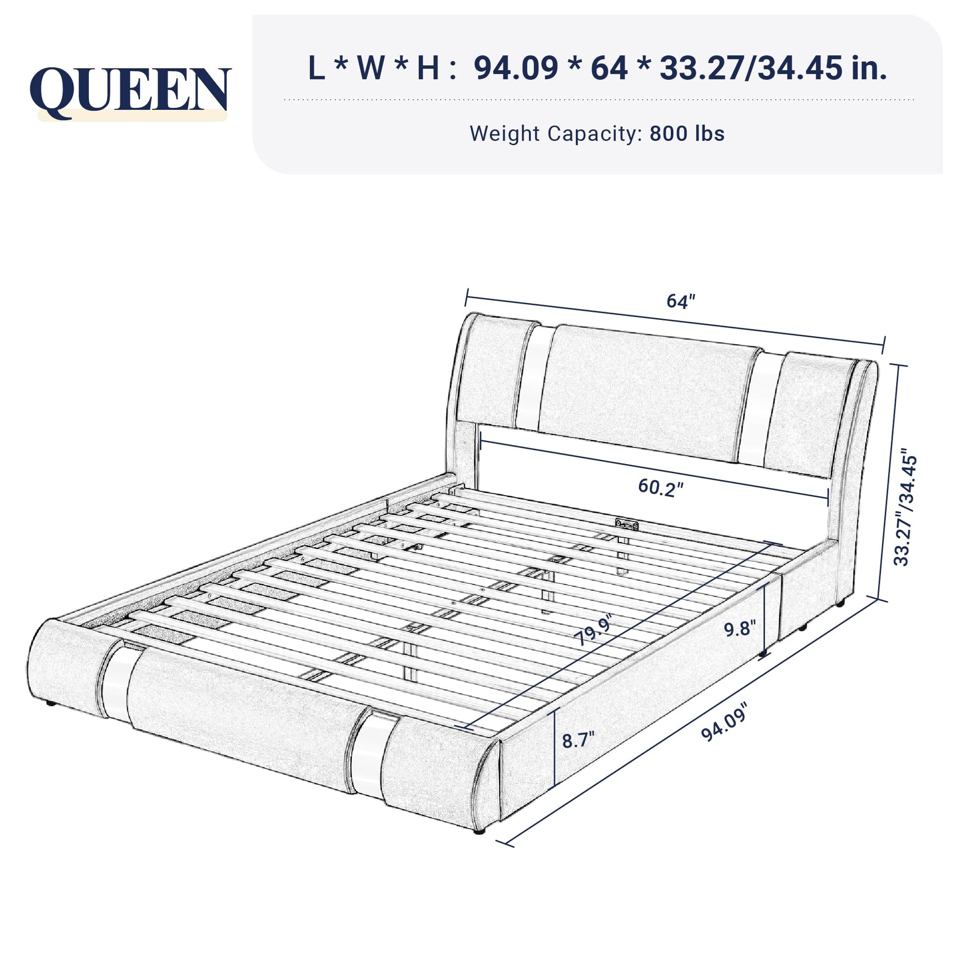 Sturdy & Supportive – Built to hold up to 800 lbs, with reinforced slats for long-lasting mattress support.