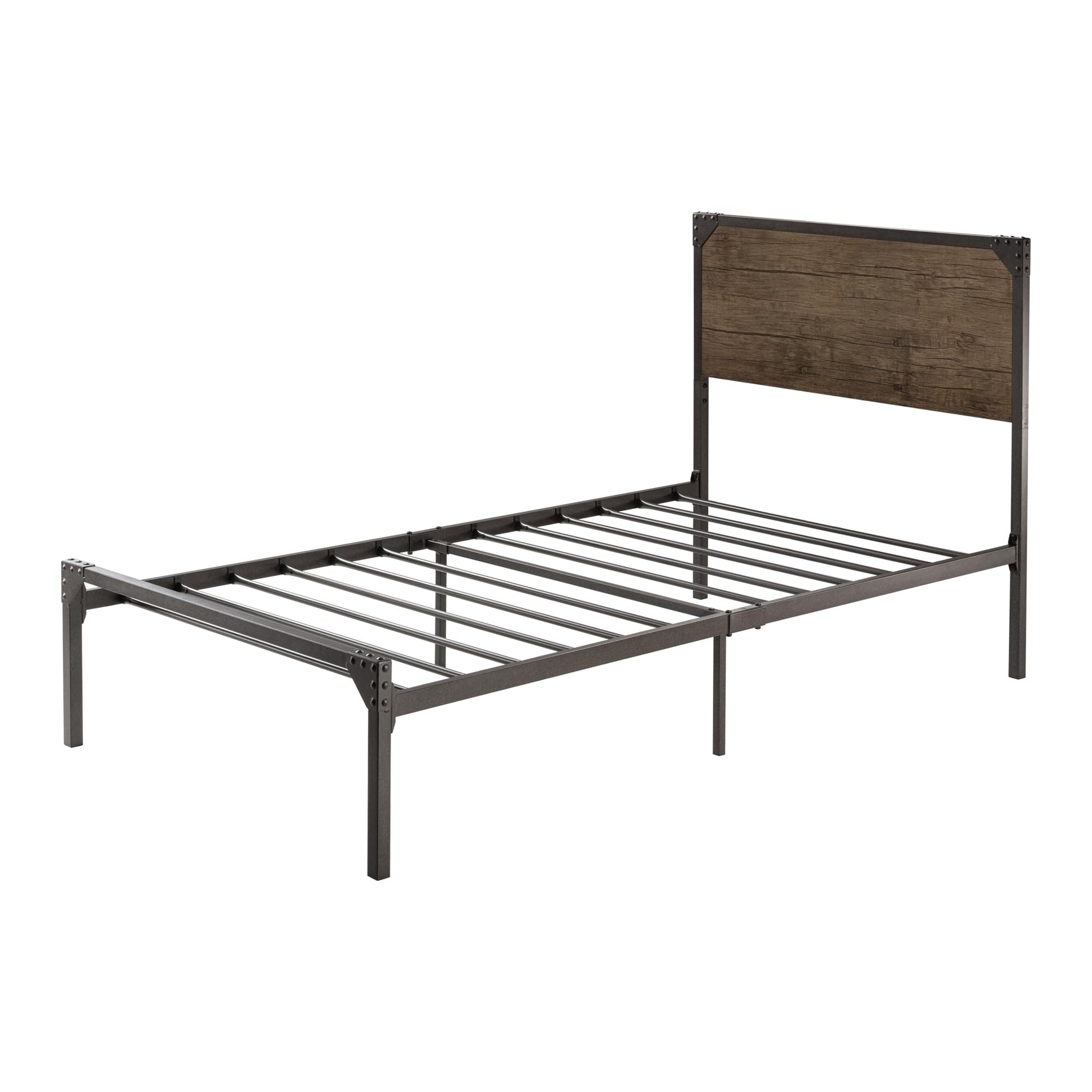 Size Twin Product Dimensions 77.2"L x 41.3"W x 40.6"H Special Feature No Box Spring Needed, Squeak Resistant, Rivet Decoration Color Brown Finish Type Powder Coated