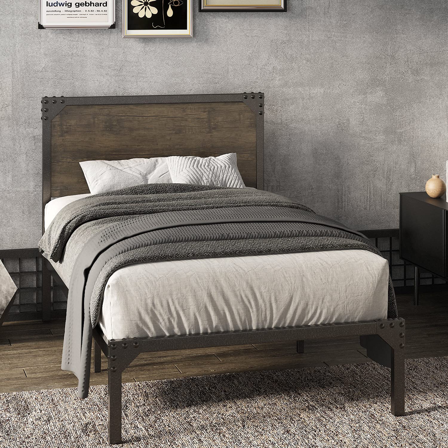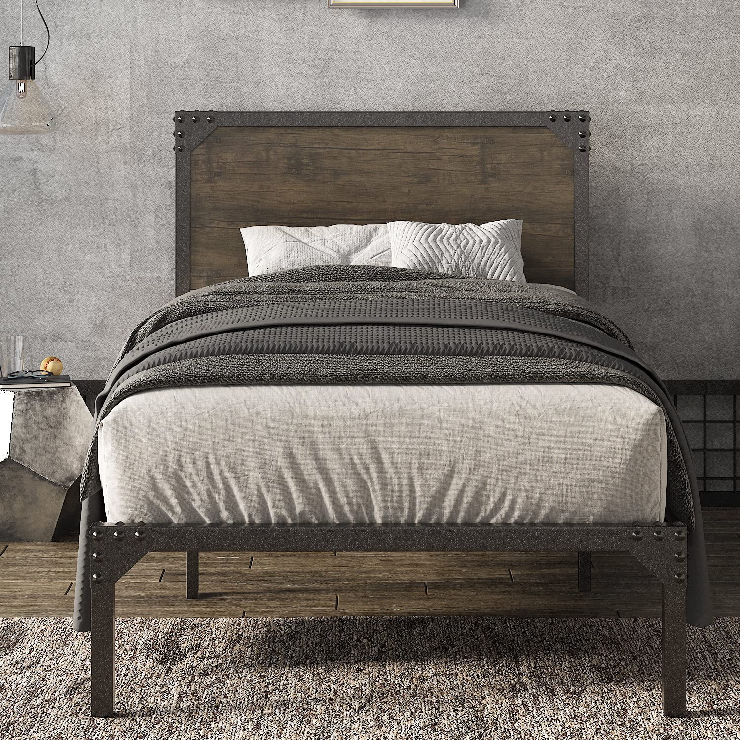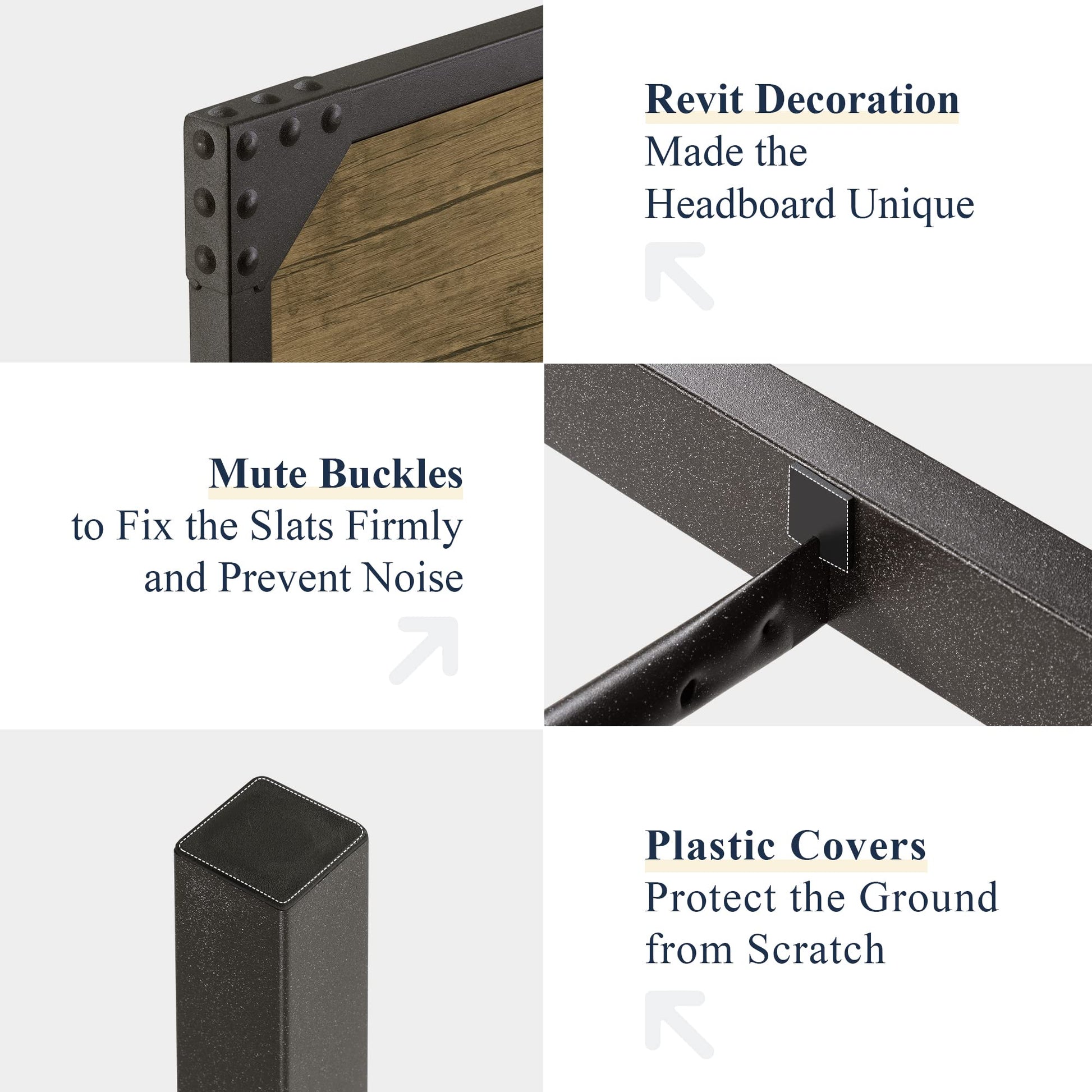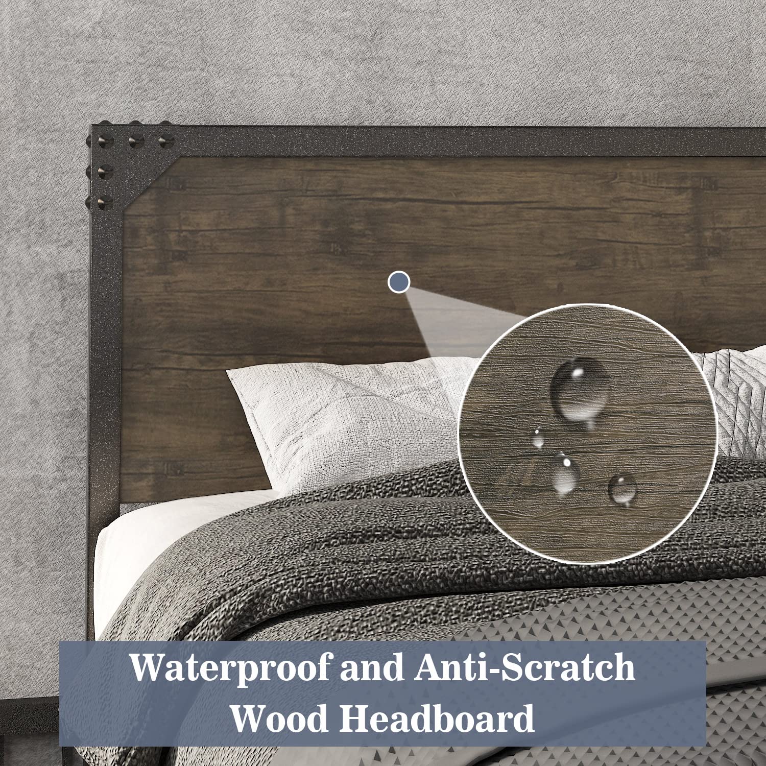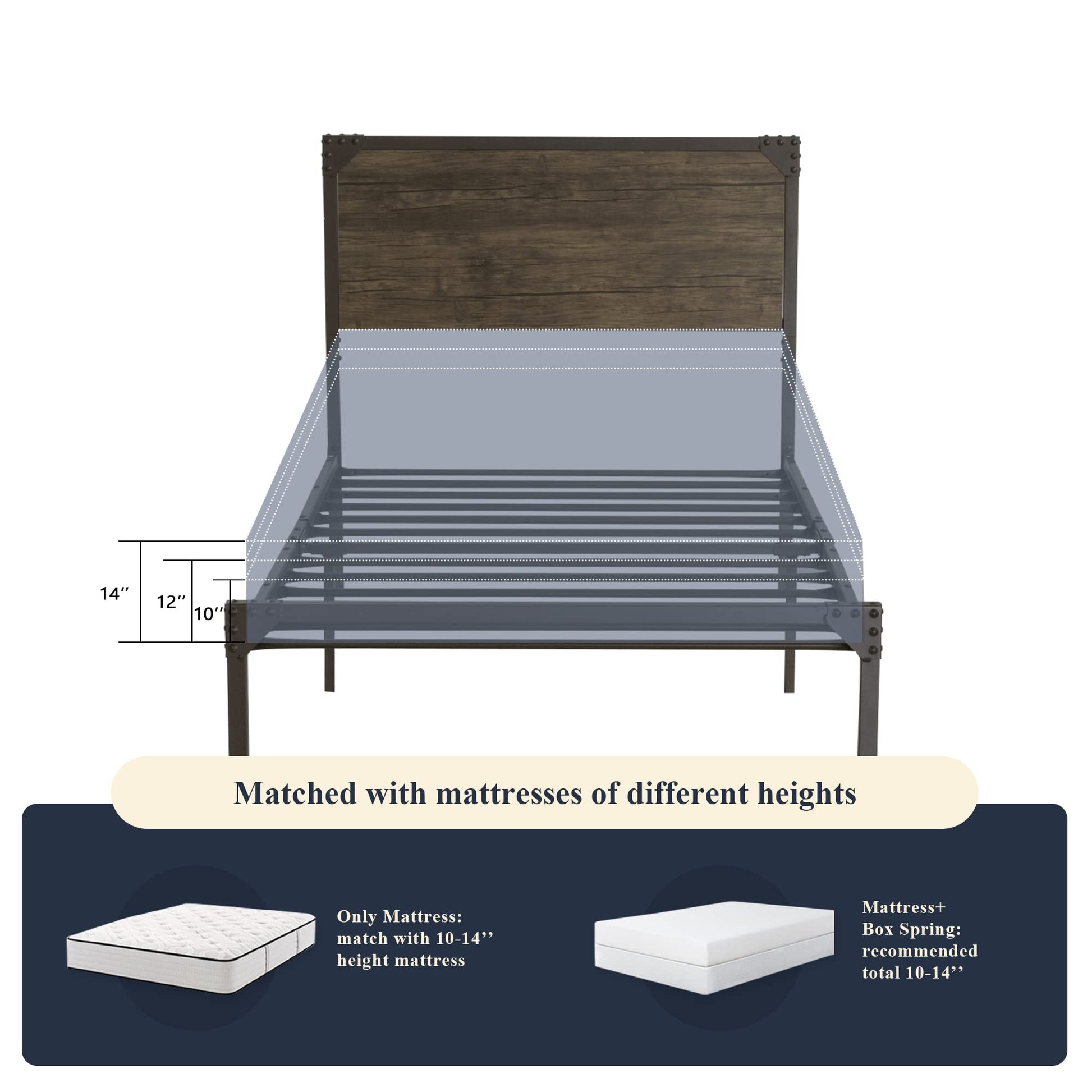 - Rustic style: The wooden headboard and metal snow brown slats take a strong rustic flair that is suitable for industrial, rustic, transitional, and farmhouse decor homes. The wood grain pattern adds a natural accent and balances the coolness of the metal.