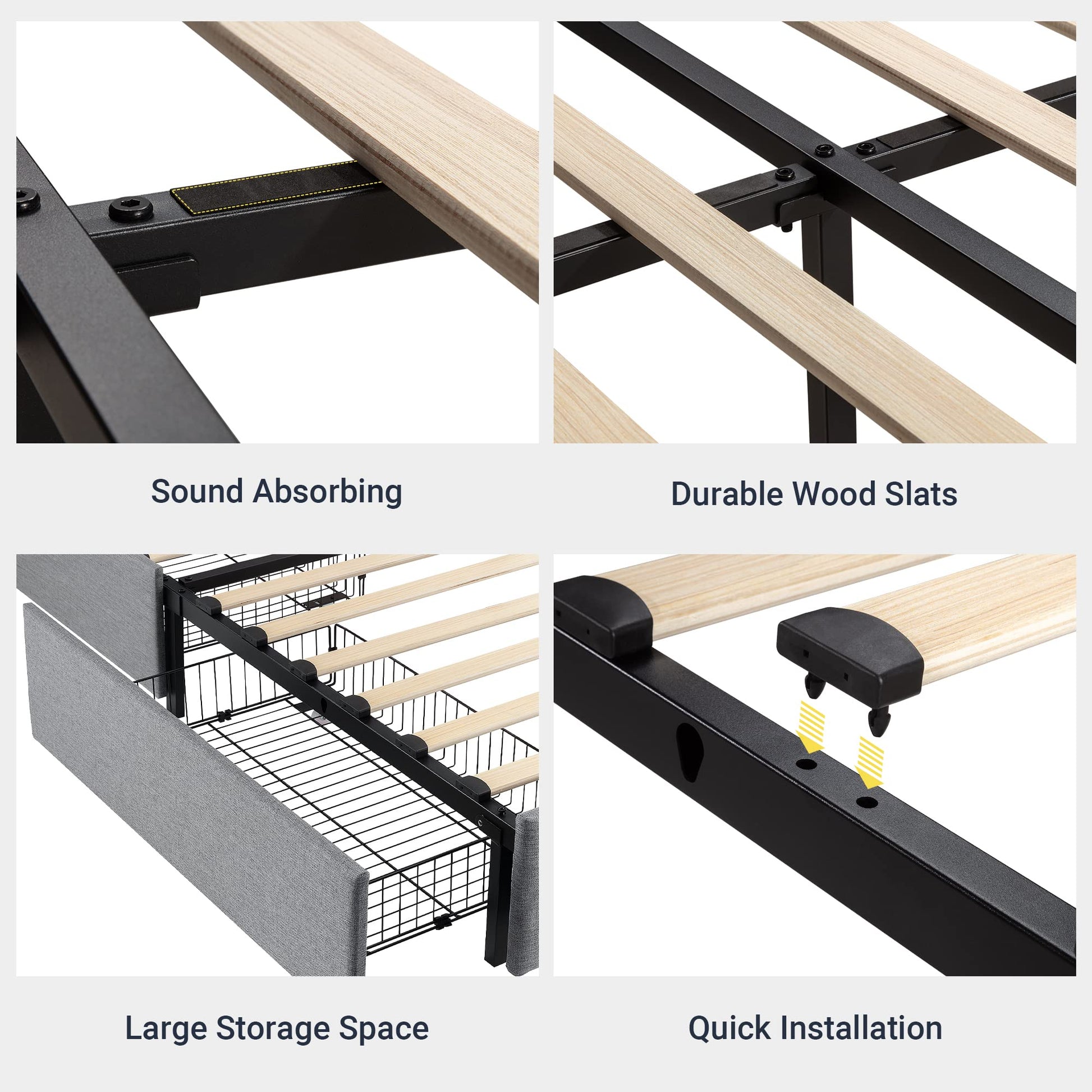 Upholstered Full Size Platform Bed Frame with 4 Storage Drawers