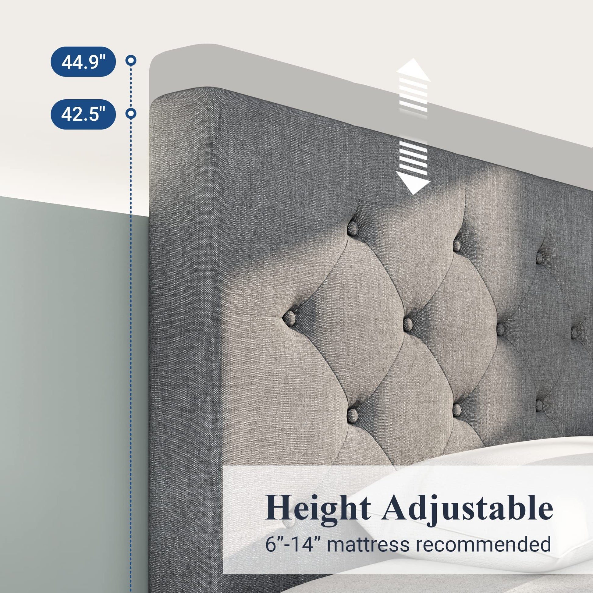 - Adjustable Headboard: The headboard of this full-size bed frame can be adjusted to 42.5 or 44.9 inches in height, suitable for a 6-14 inches mattress.
