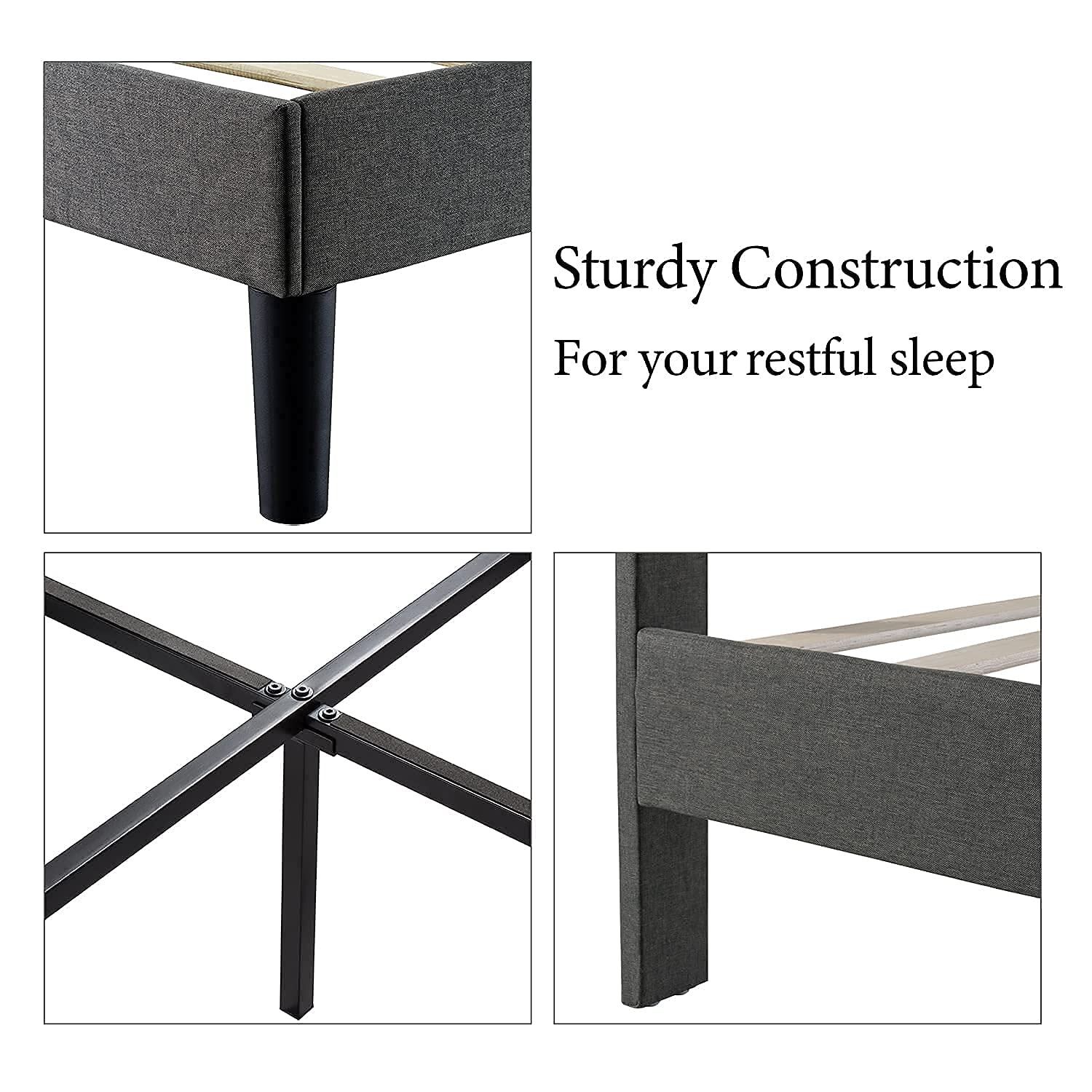 - Slat support: There are wooden slats in the middle of the platform and the central metal supports together, customers do not need to buy spring boxes.