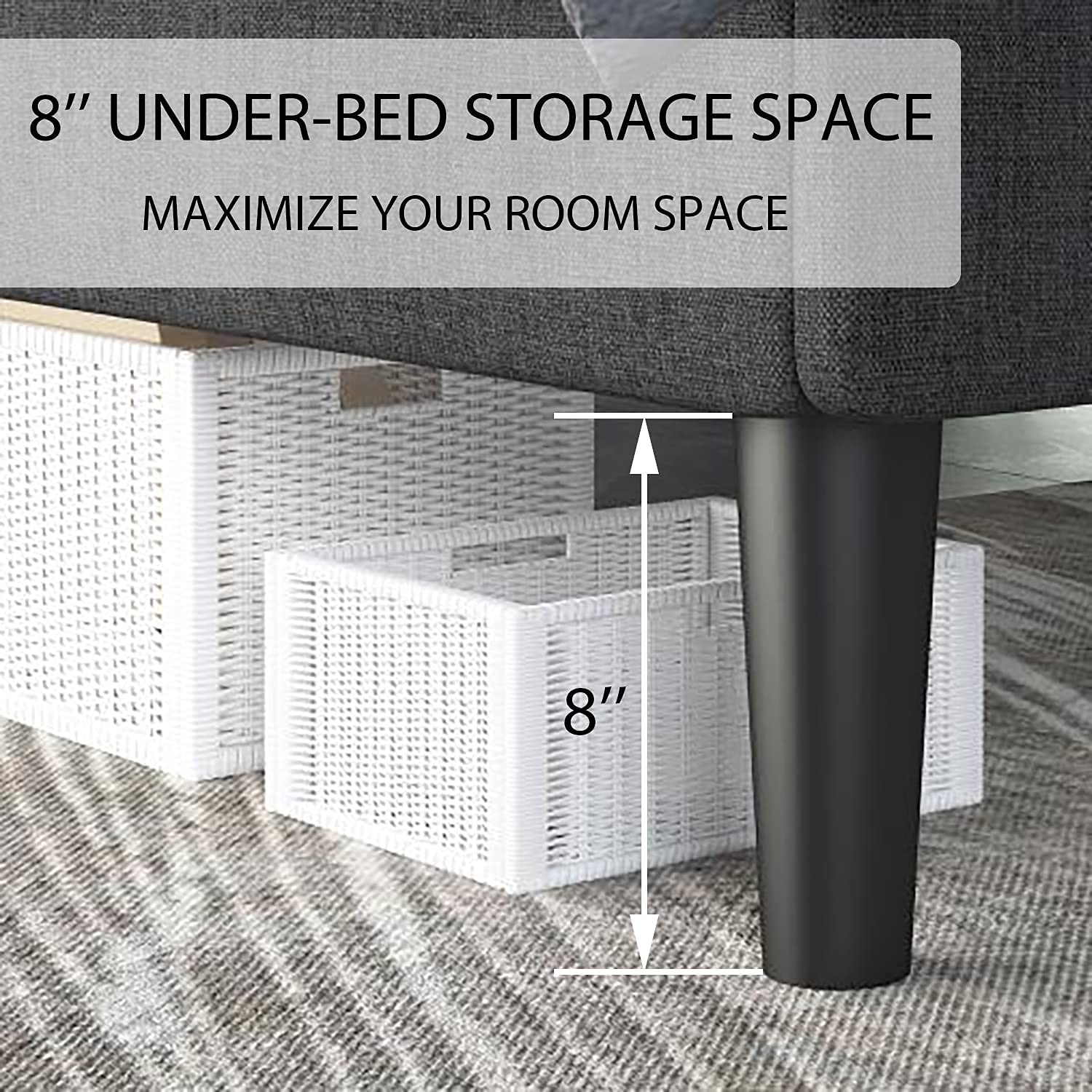 - Adjustable Upholstered Headboard: The headboard with a height of 48''- 52''inches is thickly upholstered to provide you with a comfortable backrest function.