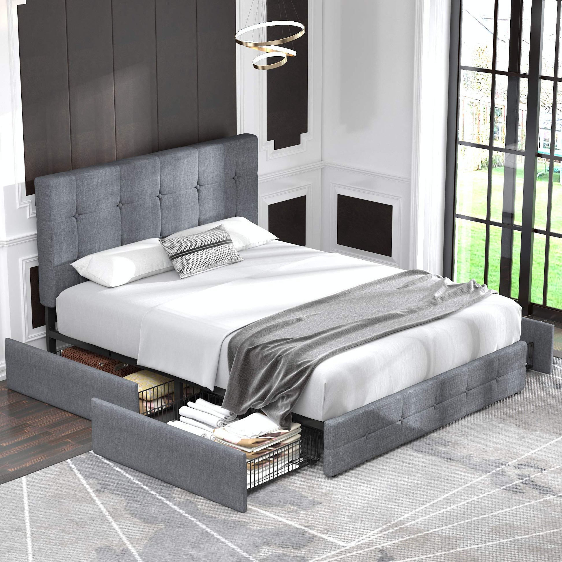 - Space-saving Functionality: With four storage drawers underneath, this queen bed frame offers perfect storage space for bed sheets, accessories, off-season clothing, etc.