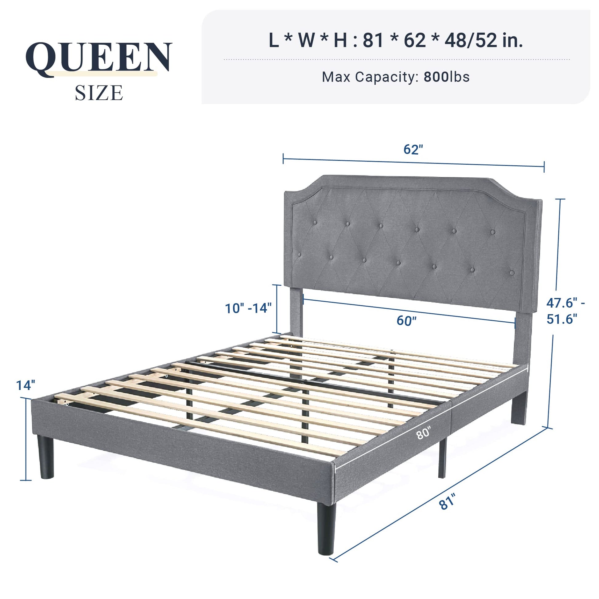 - Thoughtful Design: The modern style bed frame with curved bed corners and classic button tufted design makes the bedroom more elegant, and it can create a diverse bedroom with different decorations.