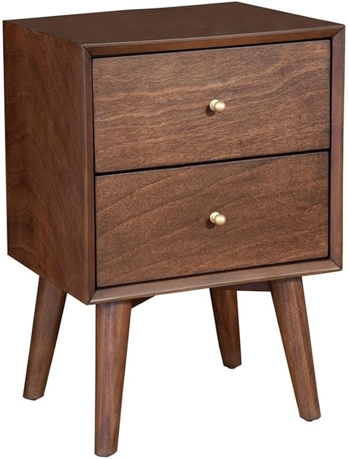 Mid Century Wood 2 Drawer Nightstand in Walnut (Brown)